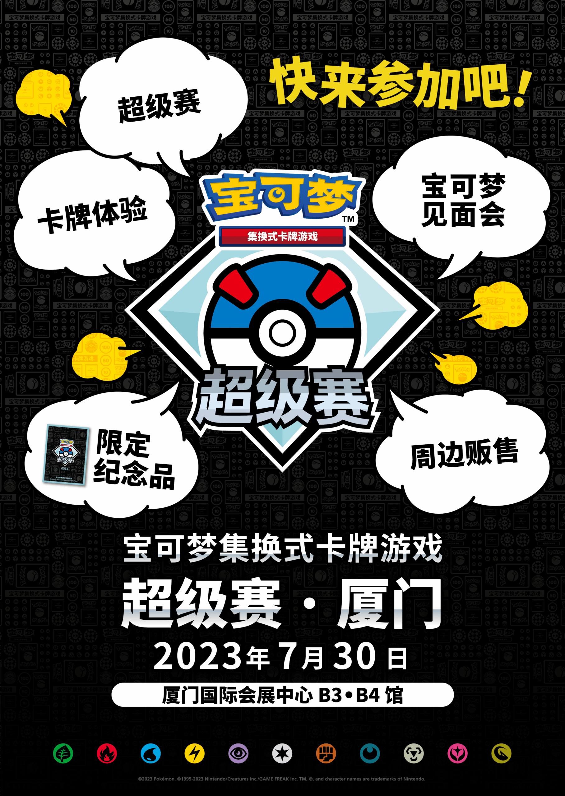 【2023宝可梦卡牌超级赛·厦门】的预热活动将于7月15日起在厦门、福州、泉州和汕头的各大商场举办,欢迎训练家们踊跃参加。