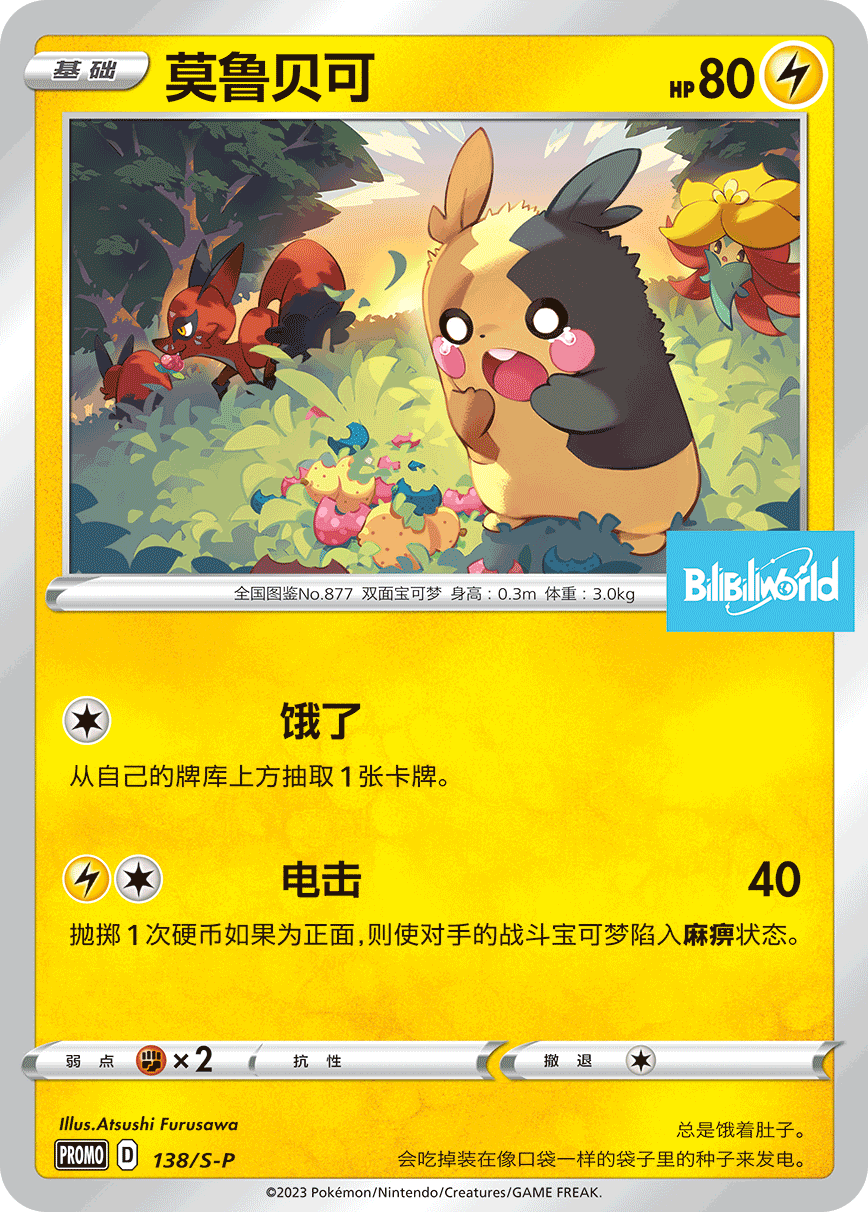 参与【BilibiliWorld冠军之路杯】预选赛,即可获得宝可梦卡牌BW合作特典卡【莫鲁贝可】。
