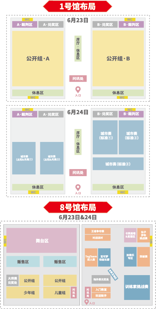 6.公开组抽选号码在1至1000的训练家及少年组现场补录的训练家,需在规定时间内于正门对应窗口出示【抽选顺序号码界面】,经确认后进入8号馆等待核销。
