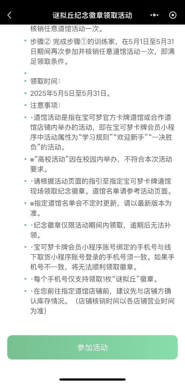 2.请根据活动页面的指引至指定宝可梦卡牌道馆现场领取纪念徽章。道馆名单请参考活动页面。