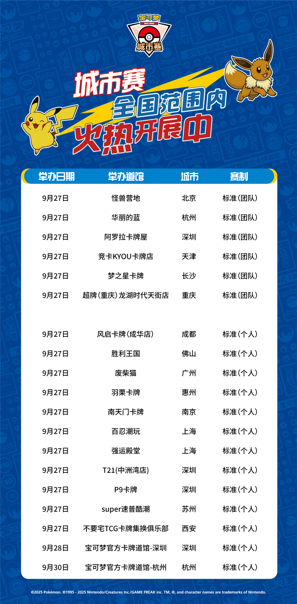 宝可梦卡牌城市赛2025年第四赛季第三批报名信息