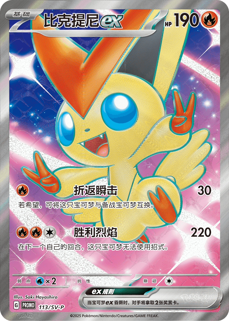 每场比赛获得冠军的训练家,可获得1张“比克提尼ex”特别插画闪卡。