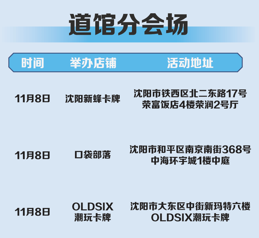 “2025宝可梦卡牌沈阳超级赛”(以下简称“沈阳超级赛”)主会场的比赛将于11月9日在沈阳新世界博览馆4A&4B馆(沈阳市和平区博览路2甲2号) 举办。 请所有参赛训练家做好最后的准备。