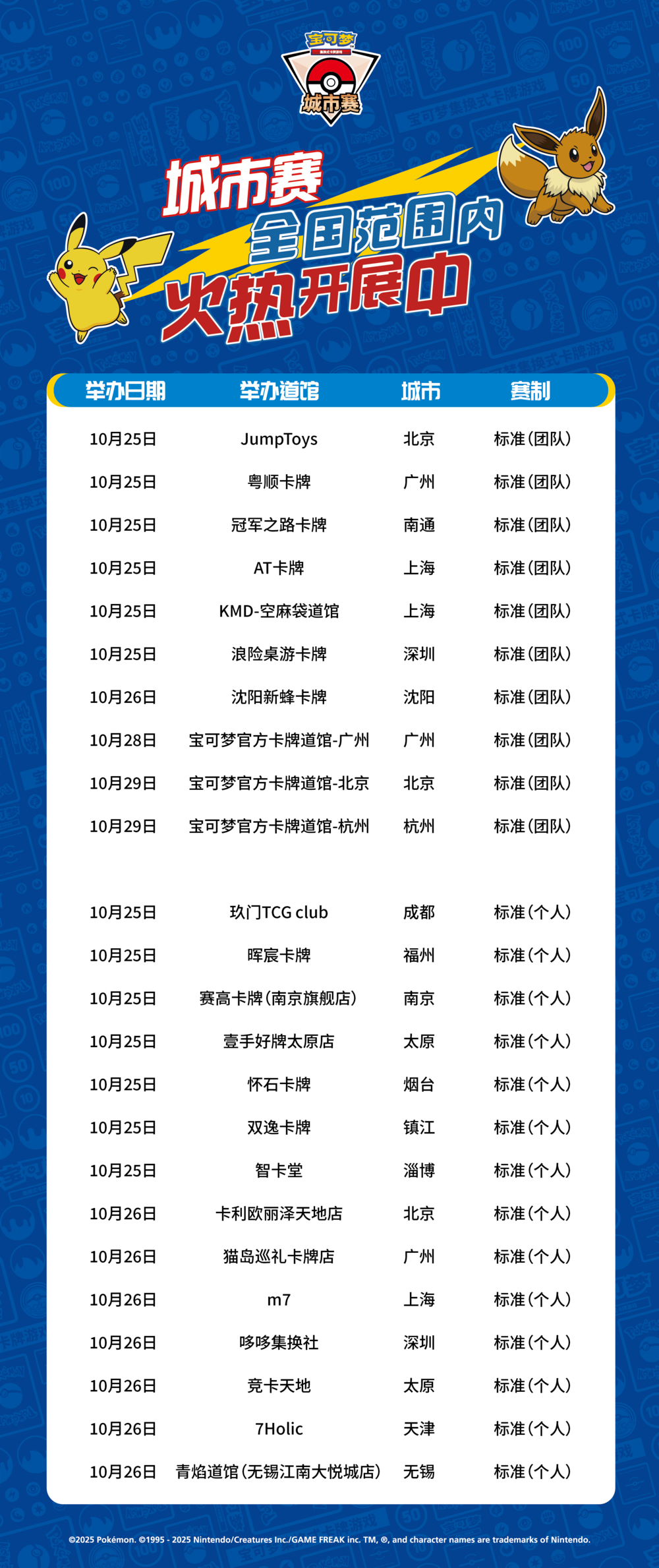 宝可梦卡牌城市赛2025年第四赛季第六批报名信息