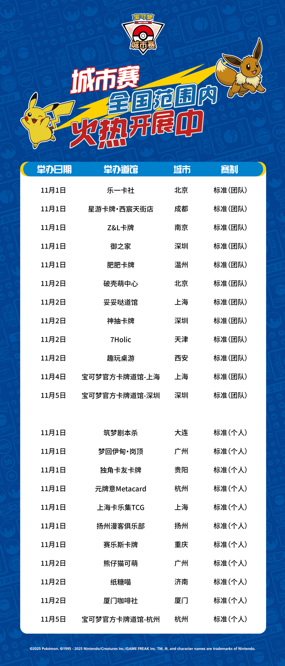 宝可梦卡牌城市赛2025年第四赛季第七批报名信息