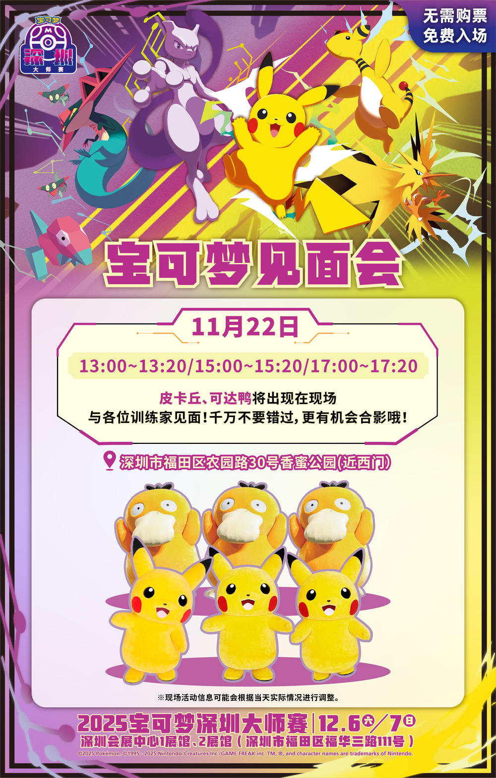 “2025宝可梦深圳大师赛”(以下简称“深圳大师赛”)将于12月6—7日在深圳会展中心1展馆、2展馆(深圳市福田区福华三路111号)举办。