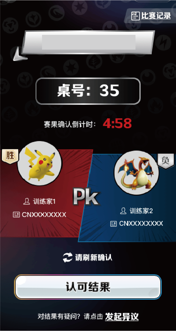 在上述35分钟内每组对局完成赛果填写后,将进入最多5分钟的赛果确认阶段。每局败方需在5分钟内点击认可结果。