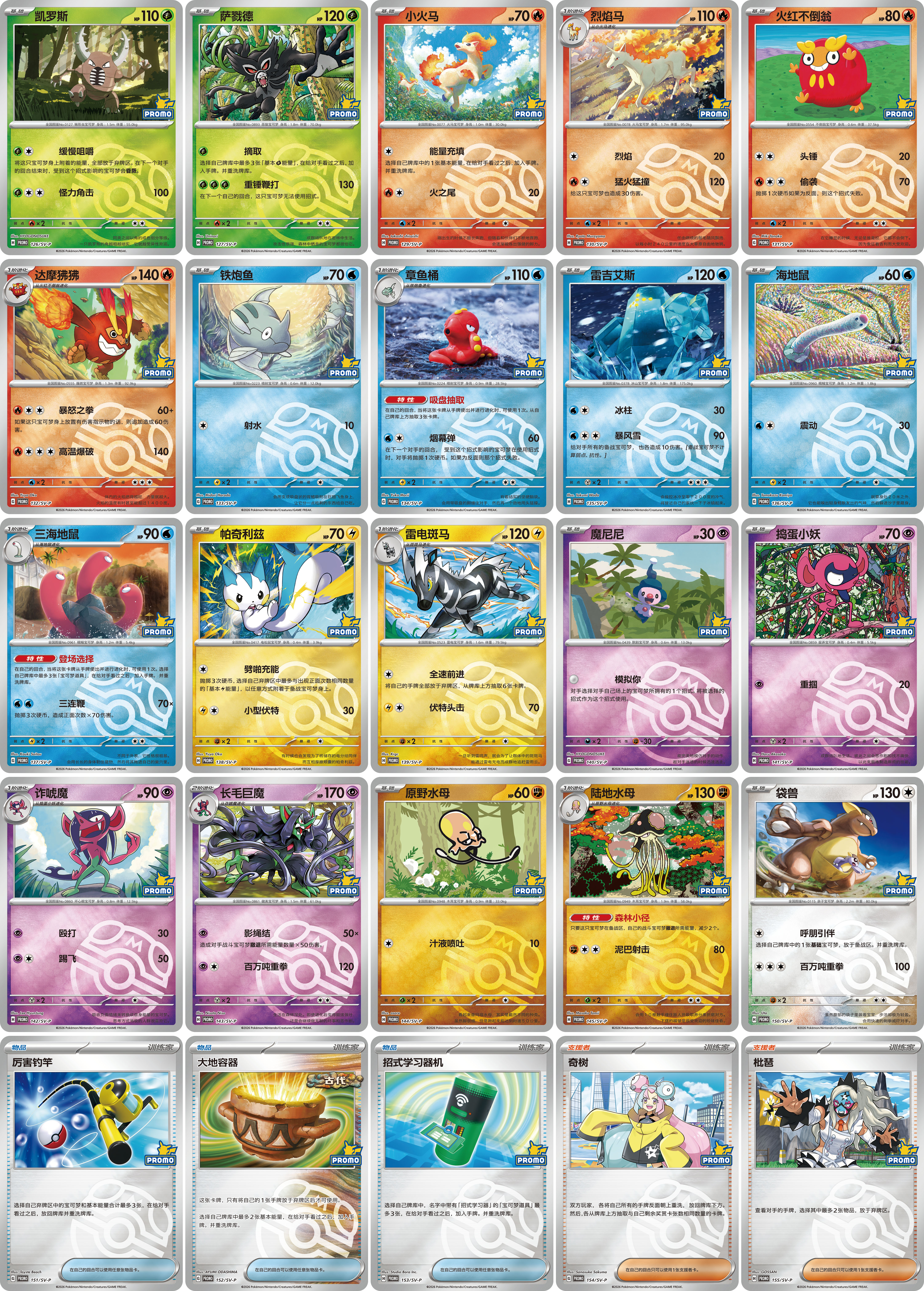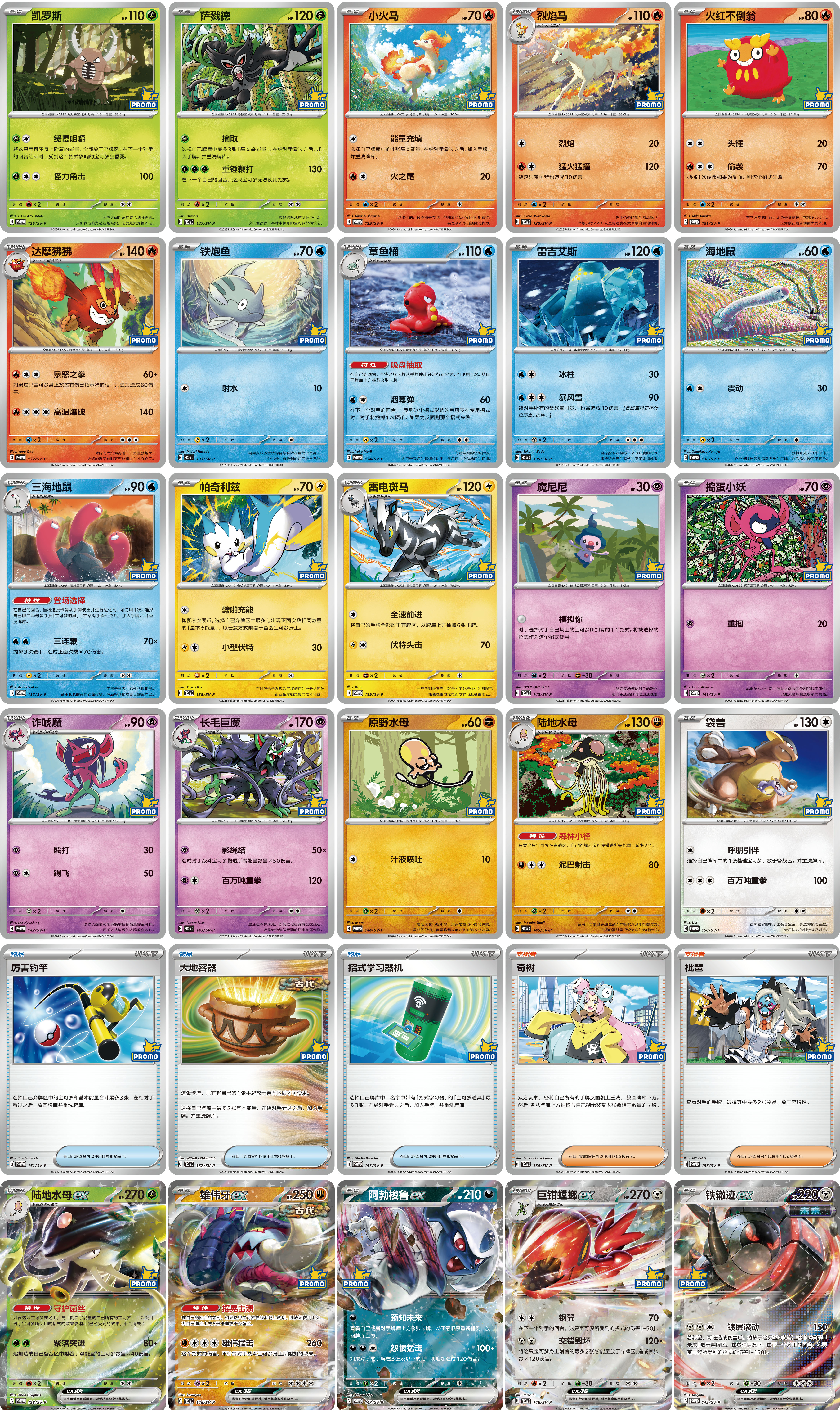 平卡和宝可梦ex闪卡,共30种。
