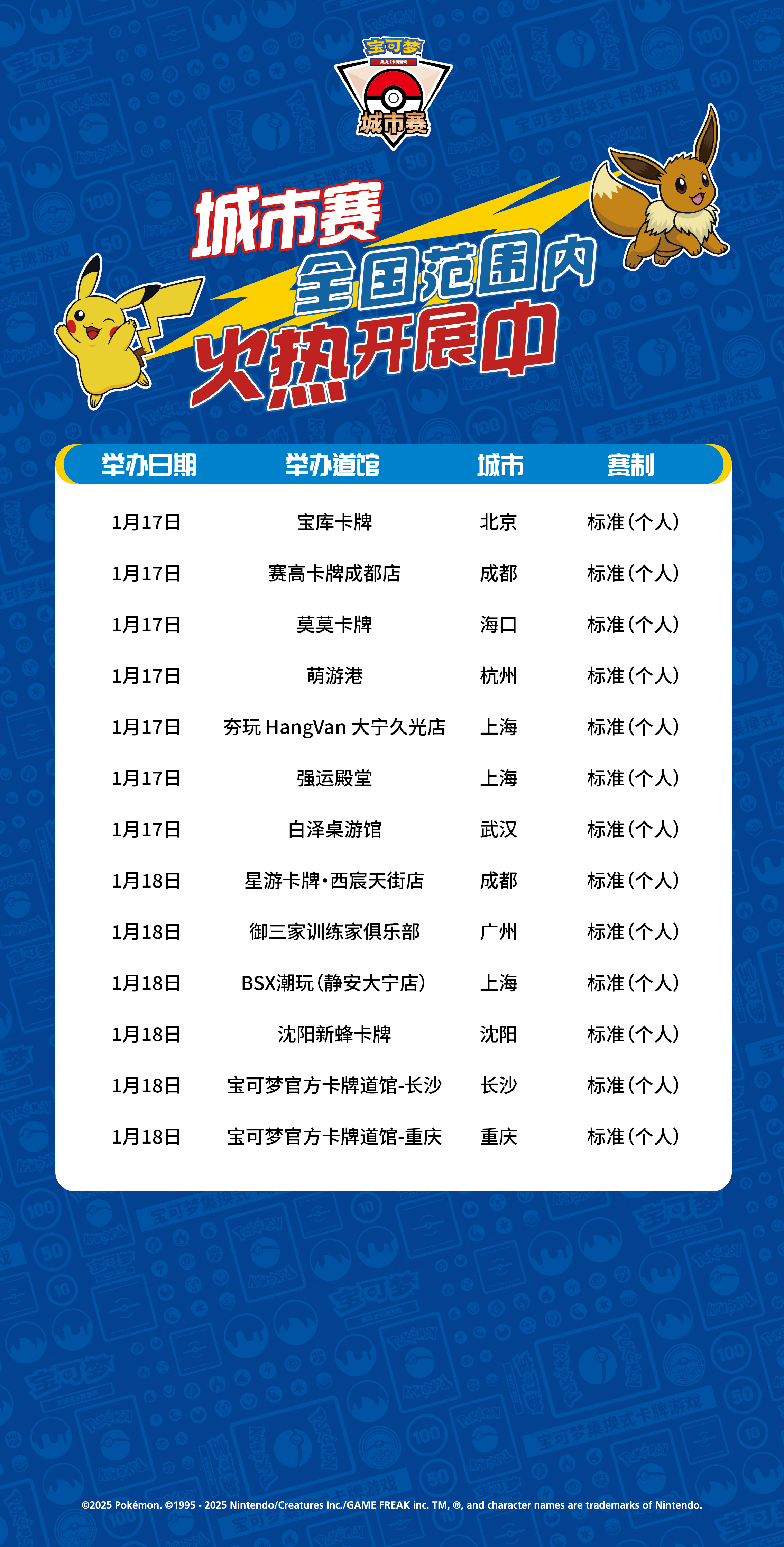 宝可梦卡牌城市赛2025年第五赛季第九批报名信息