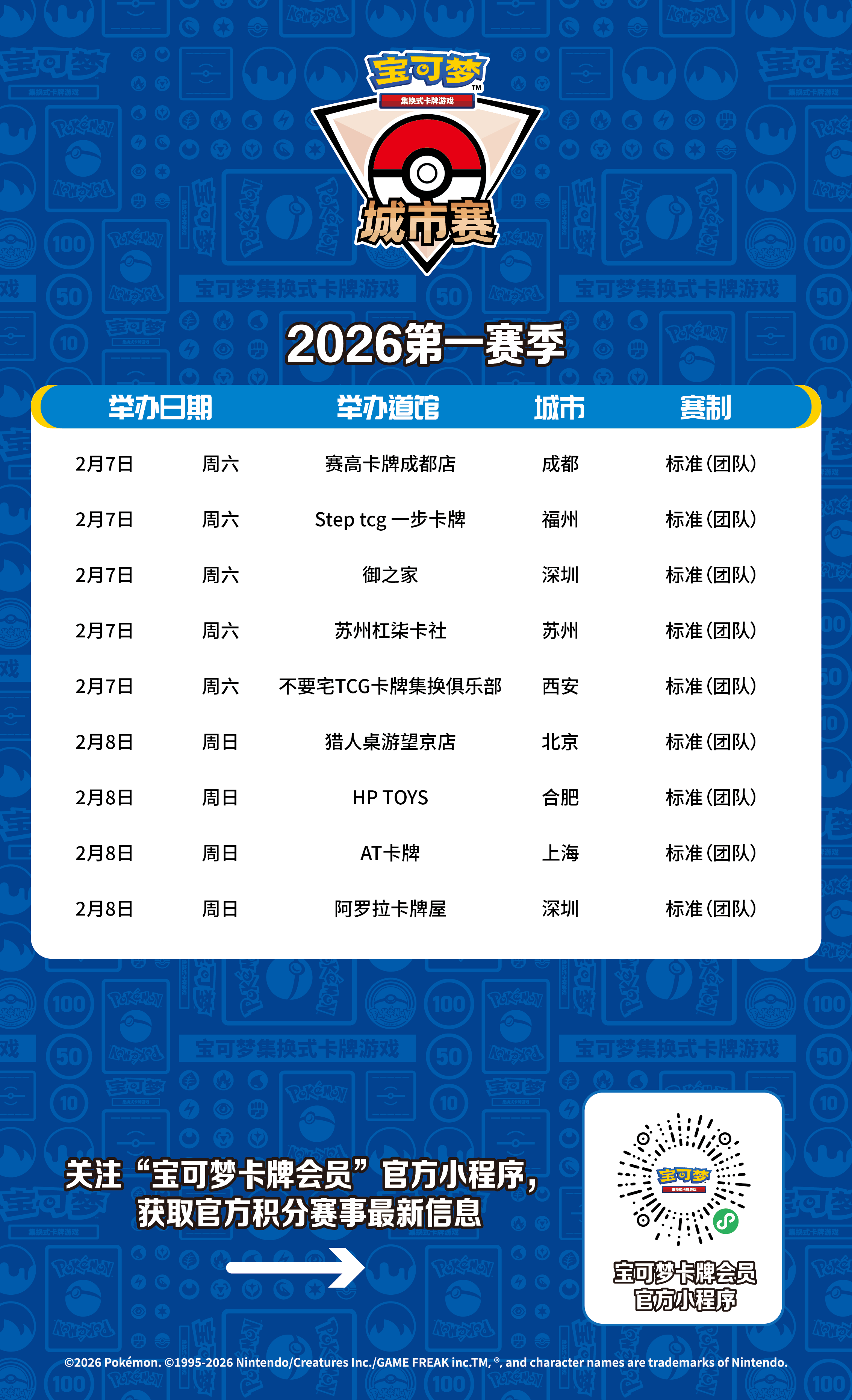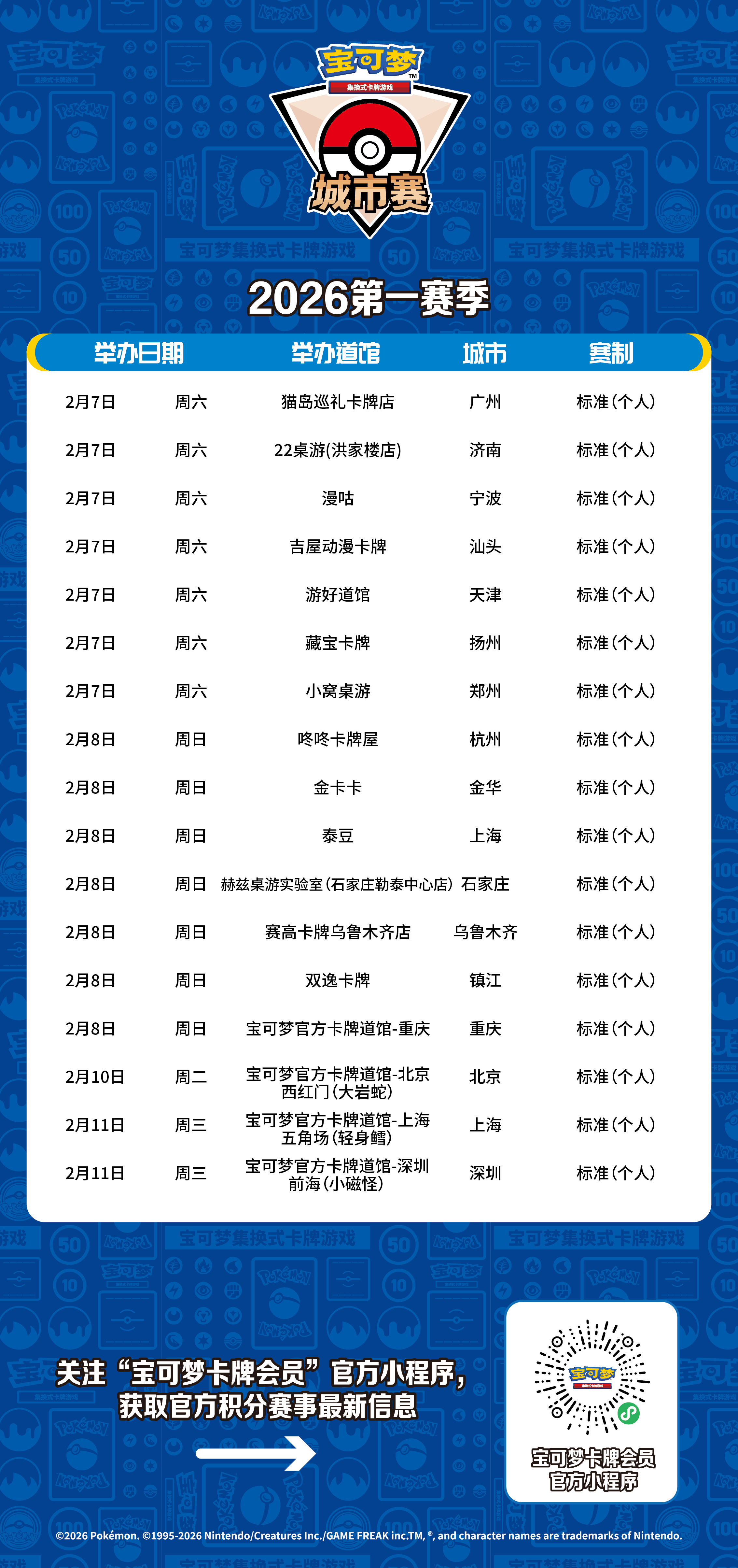 2026-02-02宝可梦卡牌城市赛2026年第一赛季第二批报名信息