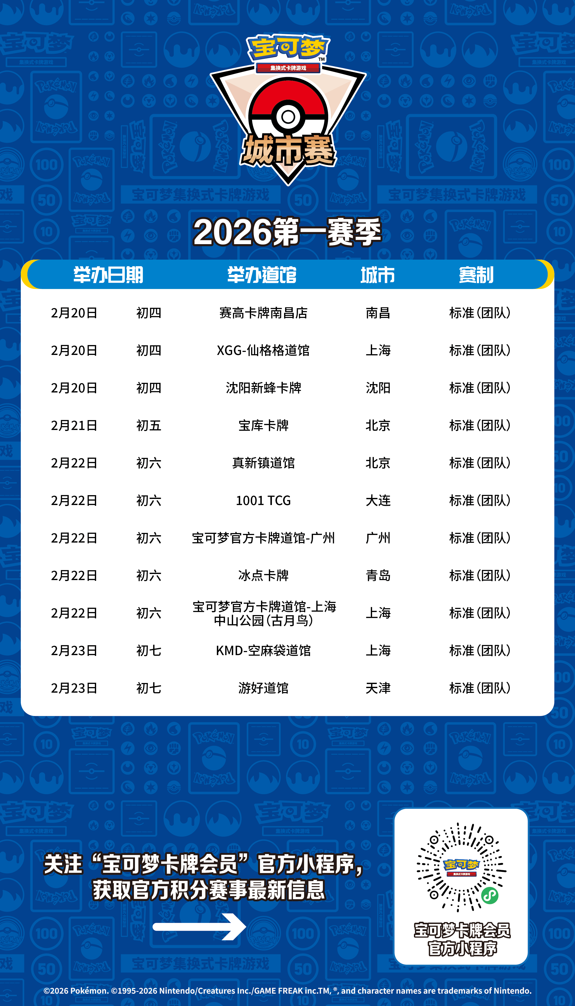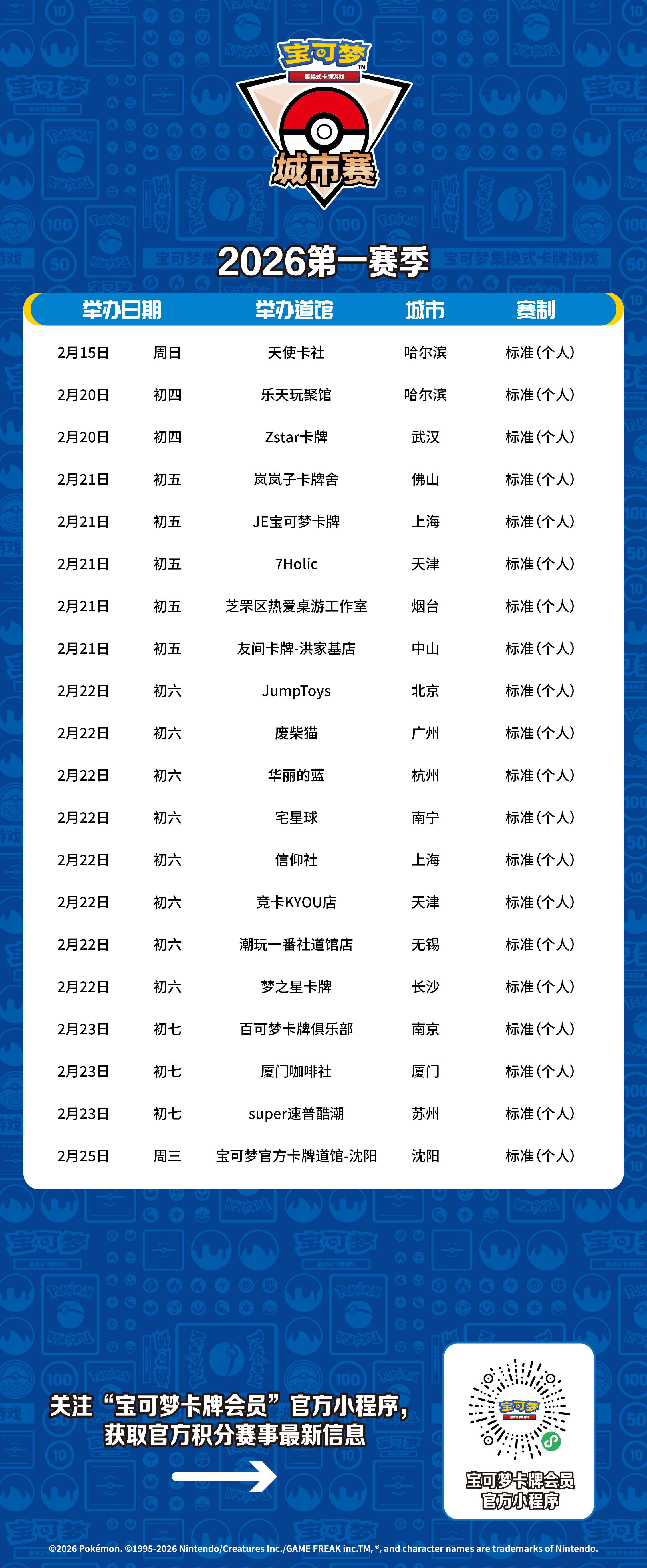 2026-02-09宝可梦卡牌城市赛2026年第一赛季第三批报名信息