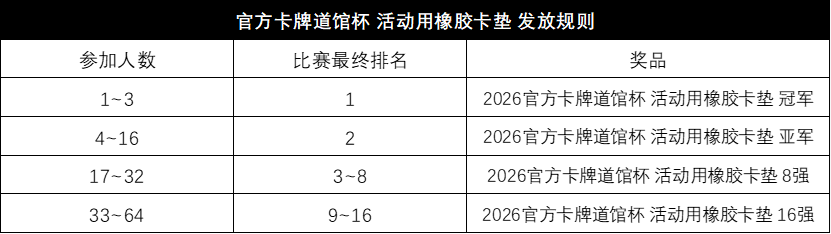 各赛区16强:2026官方卡牌道馆杯 活动用橡胶卡垫 16强 1张