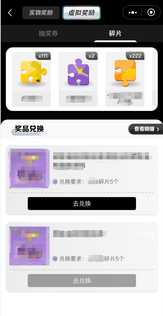 若已拥有的碎片数量满足奖励兑换要求,点击“去兑换”即可兑换奖励。