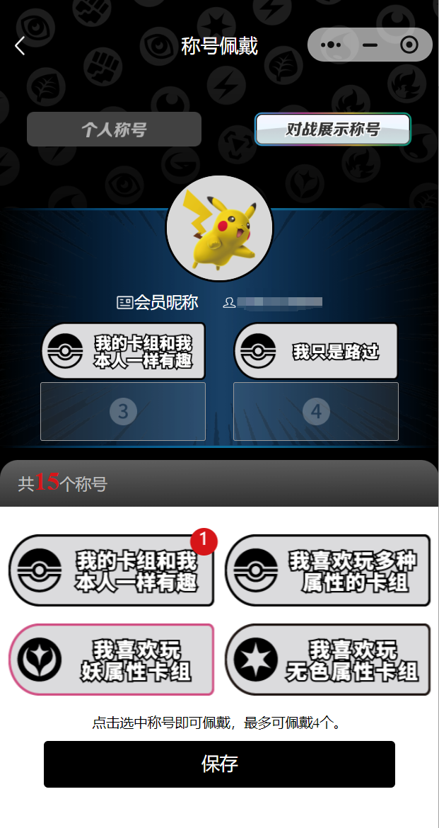每个训练家都将直接获得16个基础称号。在此之上,根据训练家们参与宝可梦卡牌活动的履历,还有可能获得进阶称号。