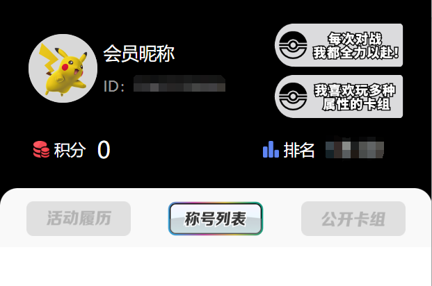 宝可梦卡牌会员称号是展现训练家个性与经历的独特标识。不论是你喜欢的卡组、可靠的队友还是丰富的对战经验,都可以通过称号来展现。