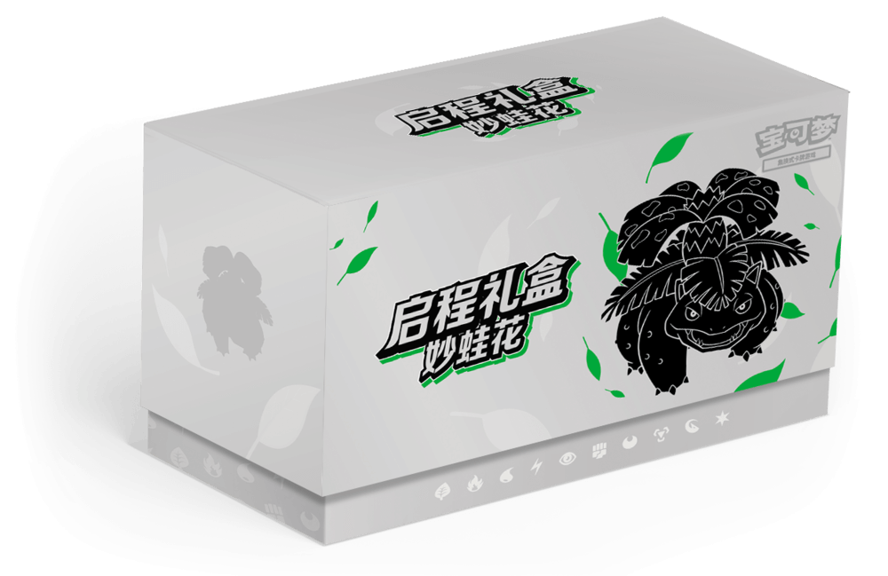 | 商品内容 | 1.补充包(20张) 3包 2.收集啦151 望(20张) 3包 3.启程专题包(2张) 6包 4.妙蛙花 启程主题艺术卡套(64张) 1套 5.妙蛙花 启程主题硬币骰子 1个 6.伤害指示物骰子 4个 7.妙蛙花 启程主题卡牌收纳盒(含2块隔板) 1个 |