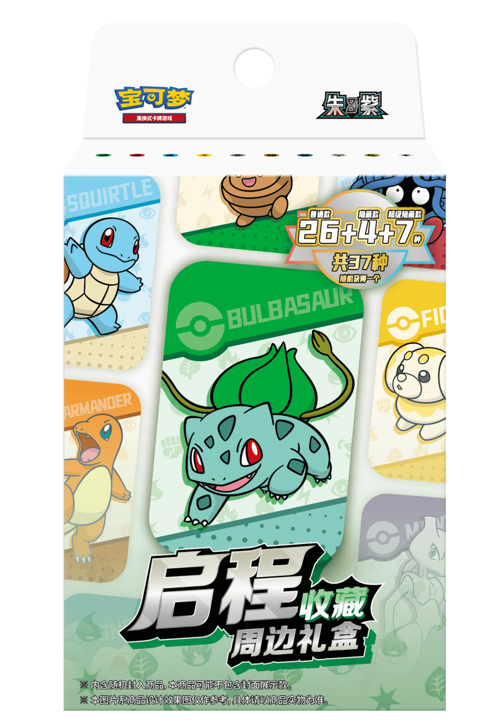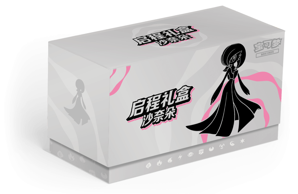 启程对战周边礼盒则在收录1包启程专题包的同时,内含随机1套以宝可梦或属性能量的形象设计而成的启程主题艺术卡套。