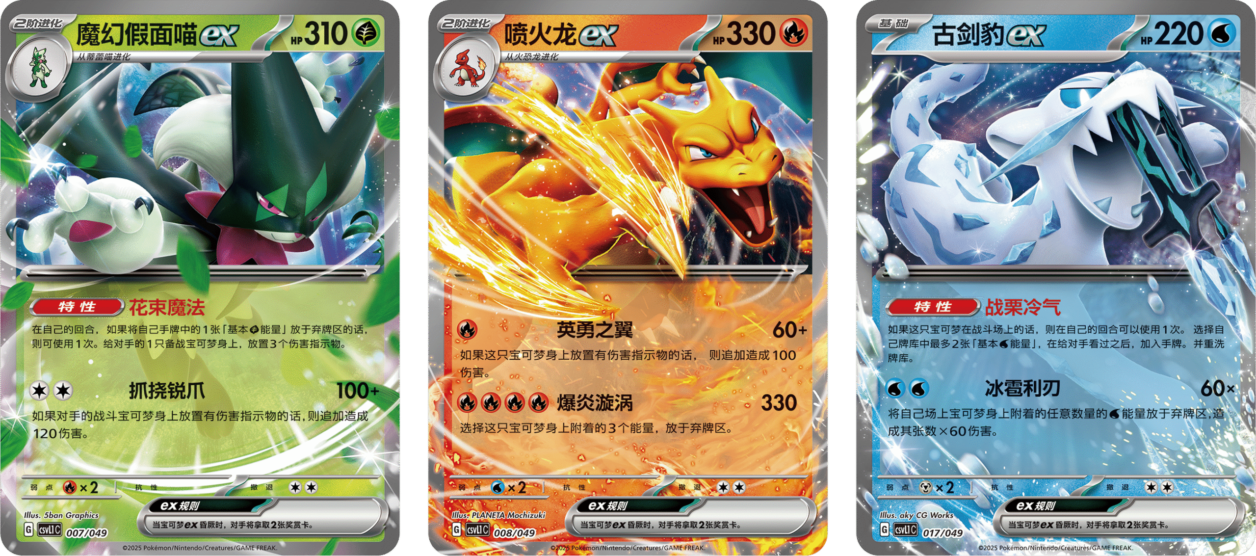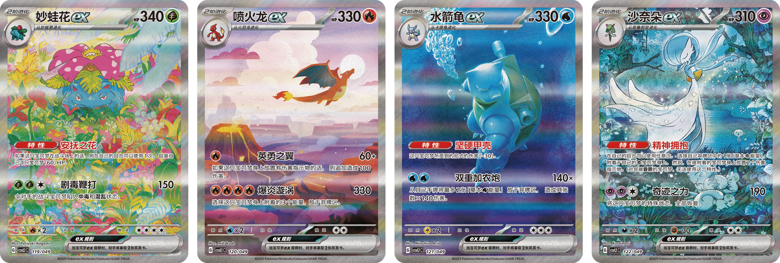 以及妙蛙花ex、喷火龙ex、水箭龟ex和沙奈朵ex的特别艺术插画闪卡。