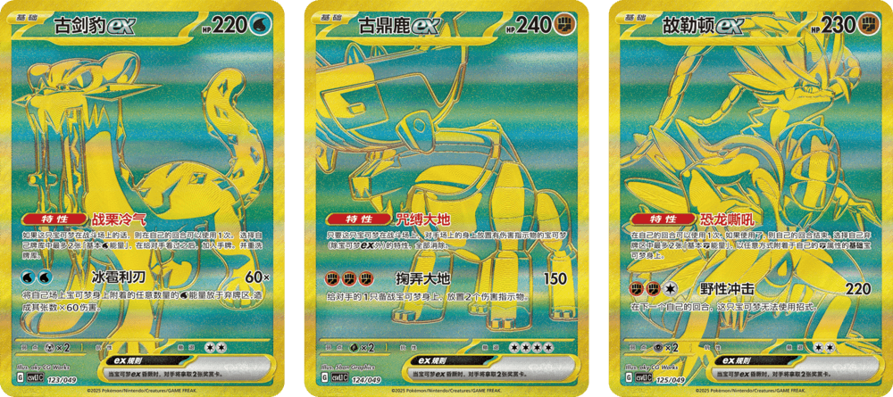 甚至还有古剑豹ex、古鼎鹿ex、故勒顿ex的全新工艺特别插画闪卡。