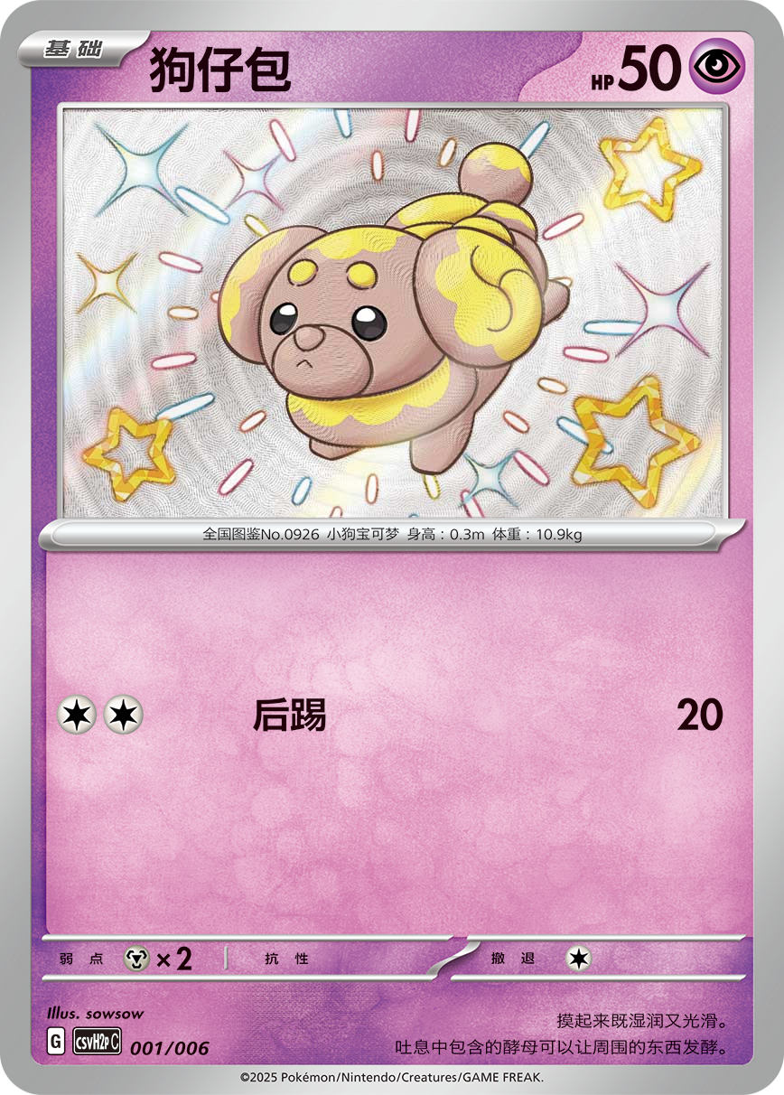 改造包中的宝可梦卡共6种,随机获得其中2张(不会重复)。其中1种为袋兽ex,出现概率为3.1%,其他宝可梦卡每种等比生产。