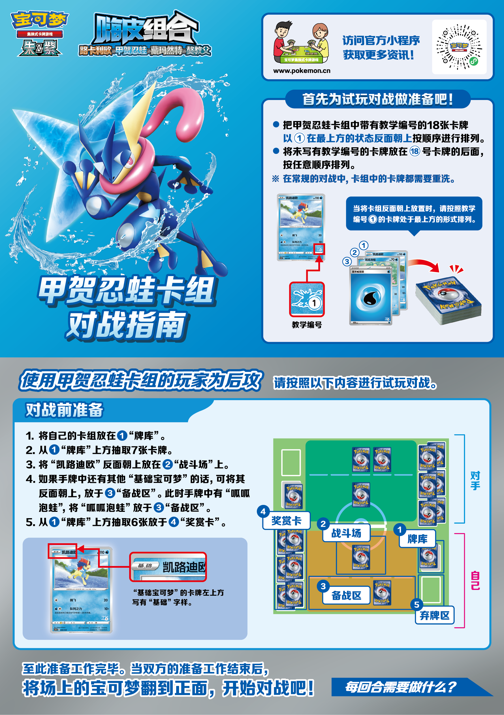 本弹嗨皮组合包含4款全新卡组,分别是路卡利欧卡组,甲贺忍蛙卡组,藏玛然特卡组以及獒教父卡组。配合附赠的卡组玩法介绍,可以快速理解每套卡组的作战思路,帮助新人训练家快速上手。