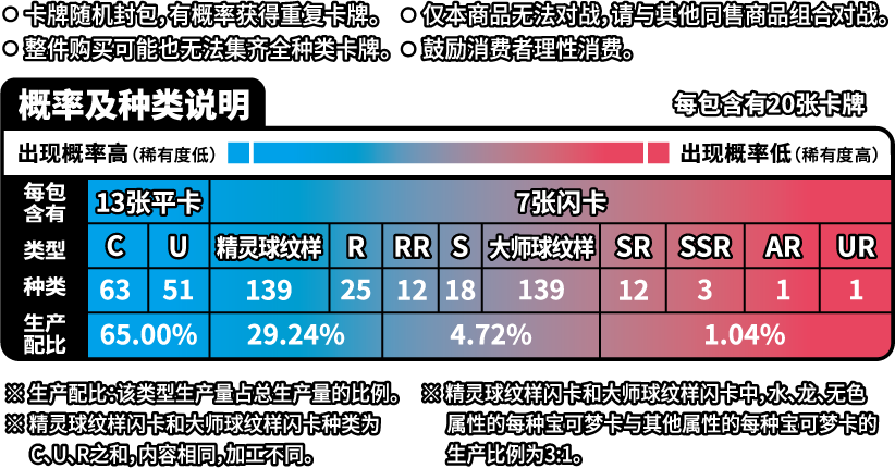 ※对应宝可梦闪卡共2种,精灵球纹样闪卡或大师球纹样闪卡的生产配比为99:1,随机获得其中1张。