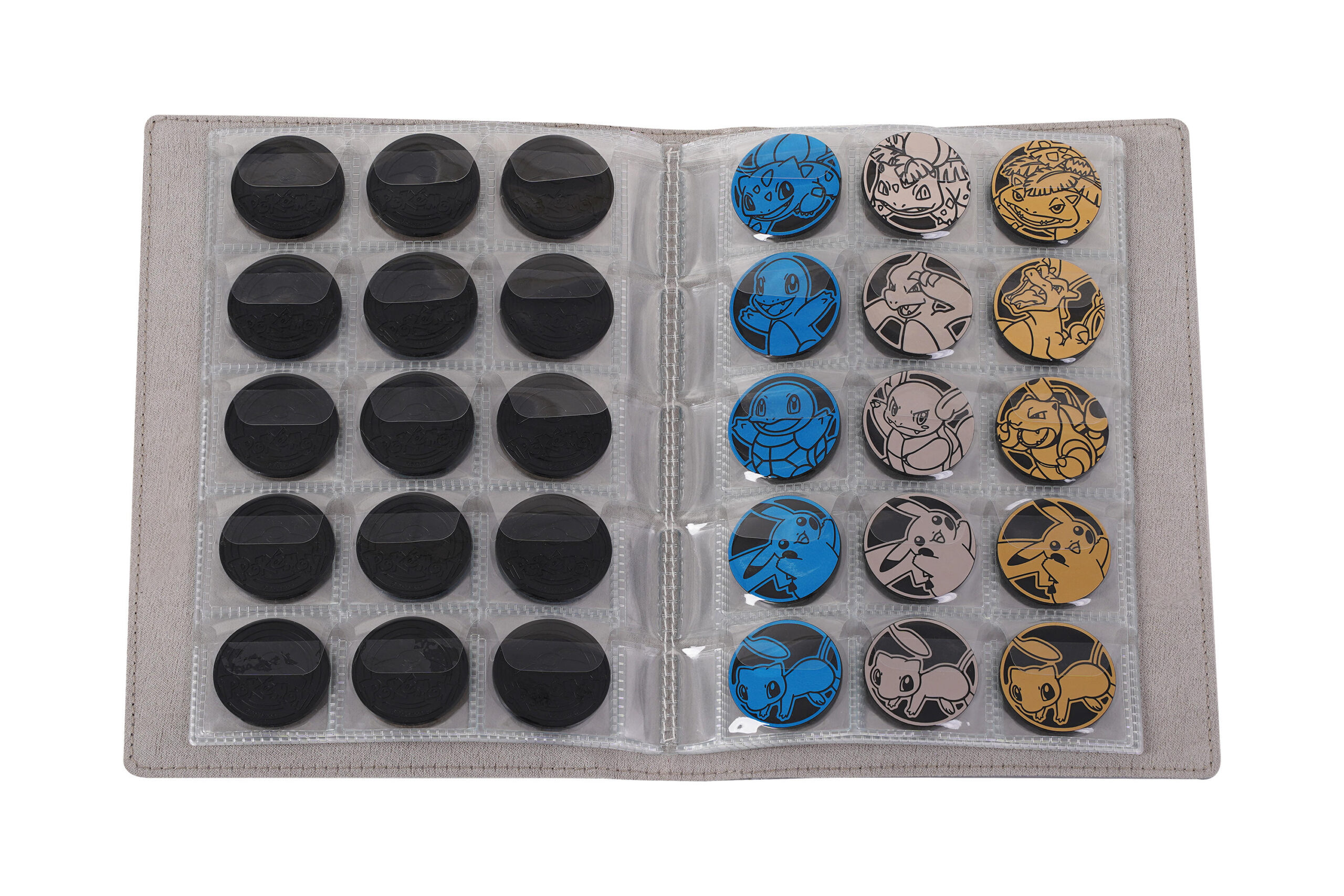 收藏册共11页,165格。每个格子均可放入1个硬币,试着用它收集宝可梦主题硬币吧!