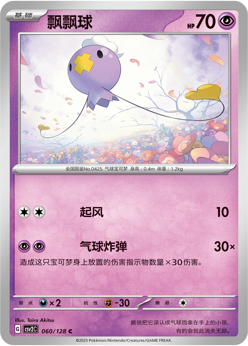 虽然使用特性需要给被附着能量的宝可梦放置2个伤害指示物,但也有一些超属性宝可梦能利用身上放置的伤害指示物造成高额伤害。比如同样收录于补充包“奇迹启程”的飘飘球。