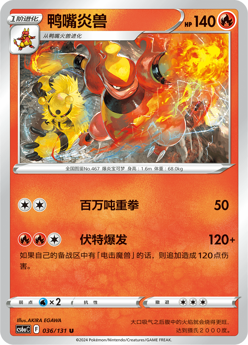 鸭嘴炎兽可以与电击魔兽搭配使用,给对手的战斗宝可梦造成追加伤害。