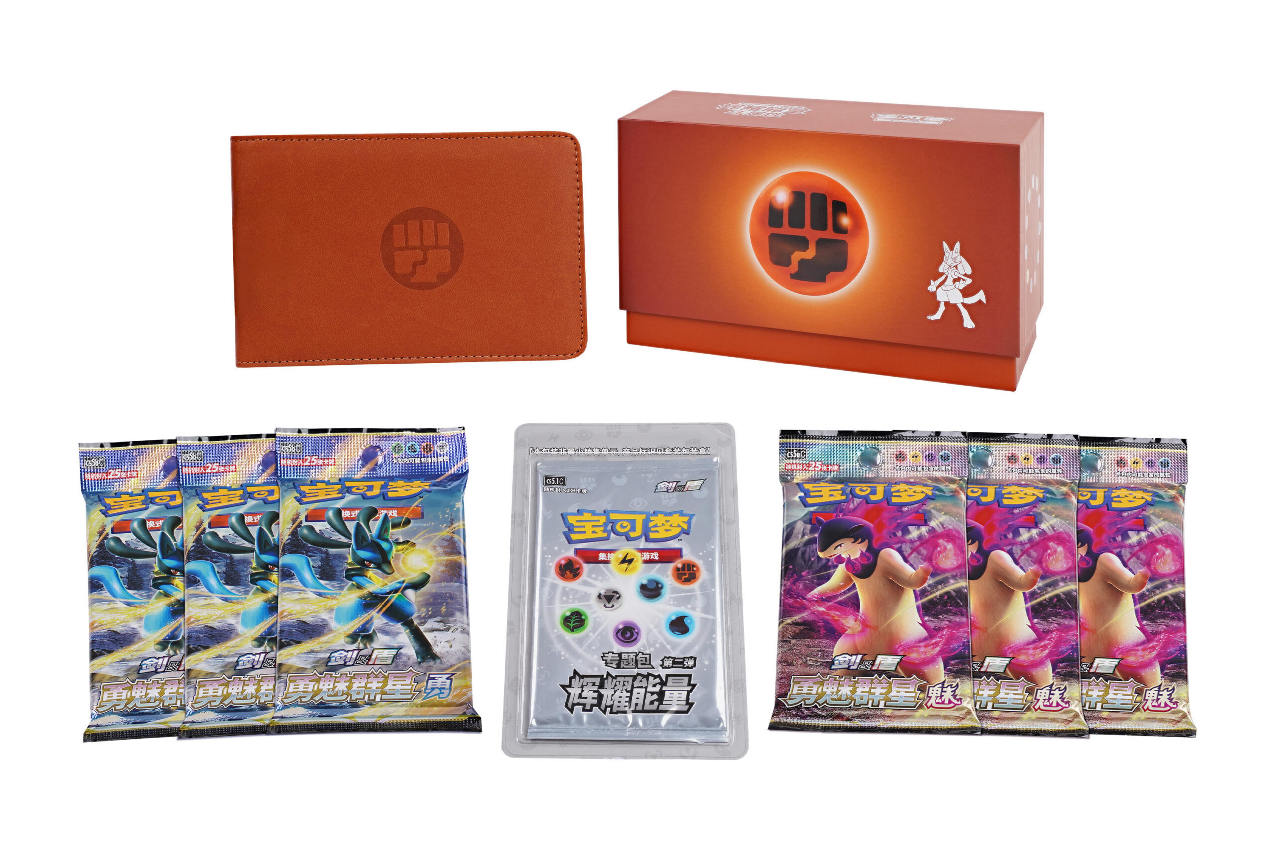 8月2日发售的“辉耀能量宝可梦收藏卡册礼盒”共有3款,分别为“辉耀能量宝可梦收藏卡册礼盒 火属性”“辉耀能量宝可梦收藏卡册礼盒 斗属性”和“辉耀能量宝可梦收藏卡册礼盒 恶属性”。每款礼盒均收录了“辉耀能量”专题包第二弹1包,最新发售的补充包“勇魅群星”也囊括在内。除此以外,对应属性的主题收藏卡册和卡牌收纳盒也收录其中。