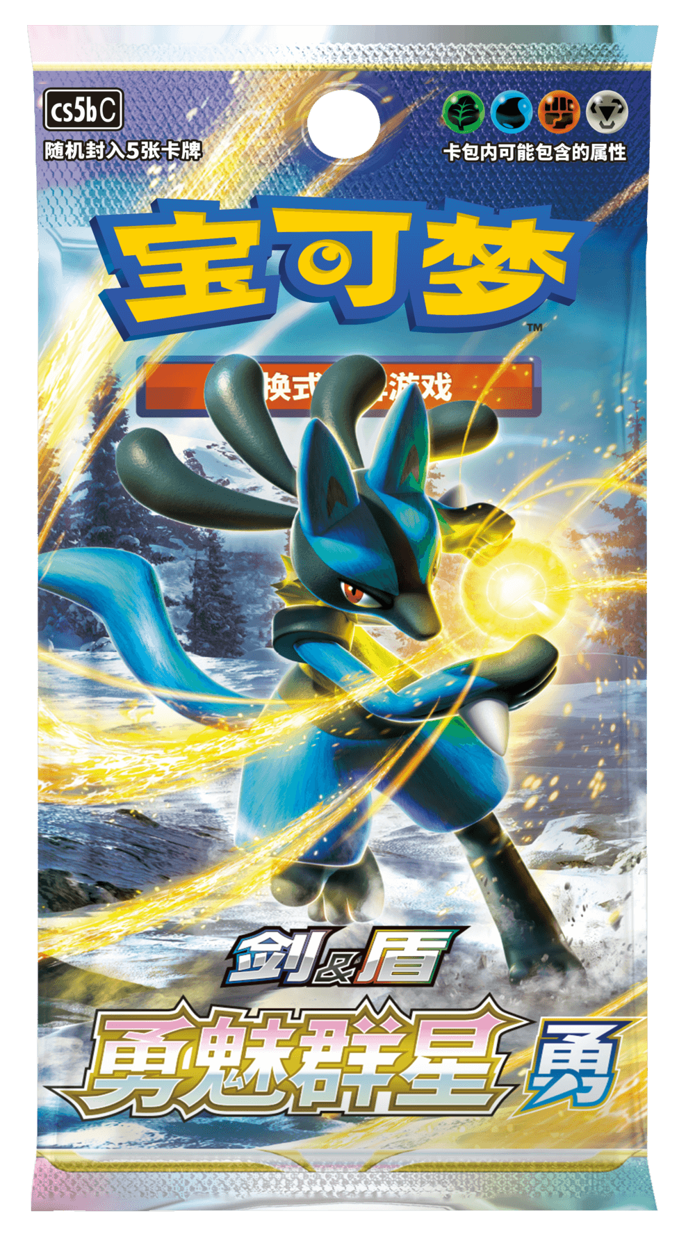 宝可梦卡牌“剑&盾”系列第五弹补充包——“勇魅群星”也在礼盒内等待你的开启。收集卡牌、构筑卡组,尽享对战乐趣吧!