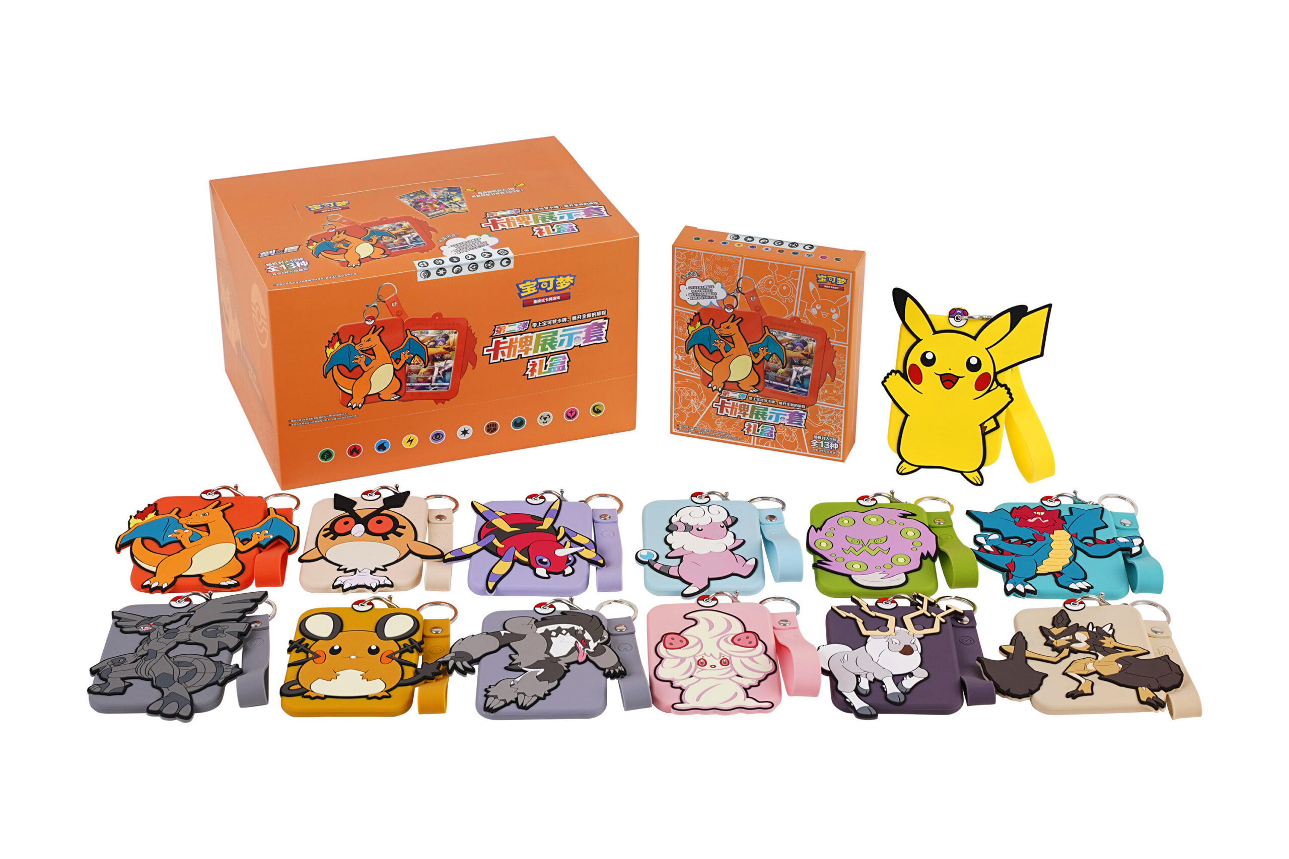 宝可梦卡牌展示套礼盒随机收录了一张宝可梦特别插画闪卡(共13种),你会和哪只宝可梦相遇呢?