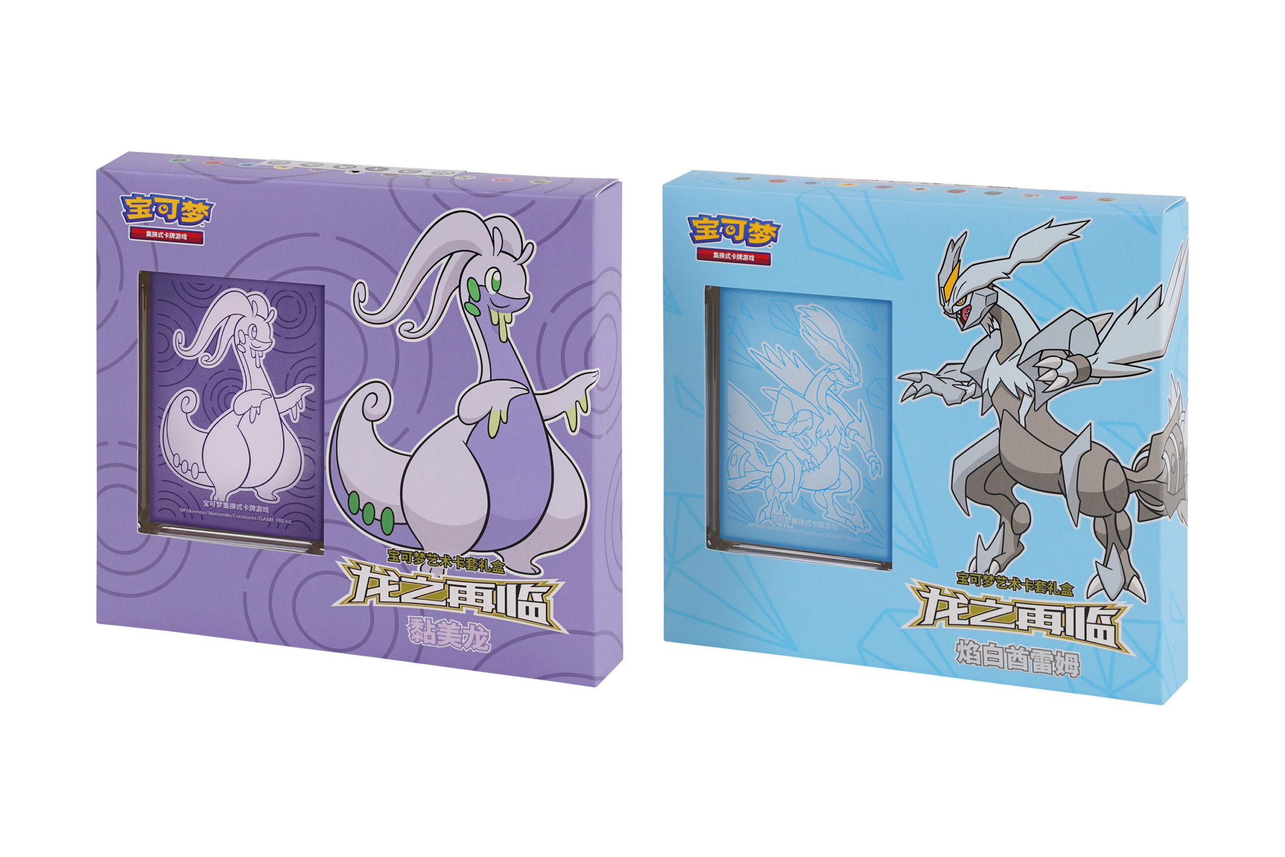 6月18日发售的“龙之再临宝可梦艺术卡套礼盒”共计2款,分别为“龙之再临宝可梦艺术卡套礼盒 黏美龙”和“龙之再临宝可梦艺术卡套礼盒 焰白酋雷姆”。