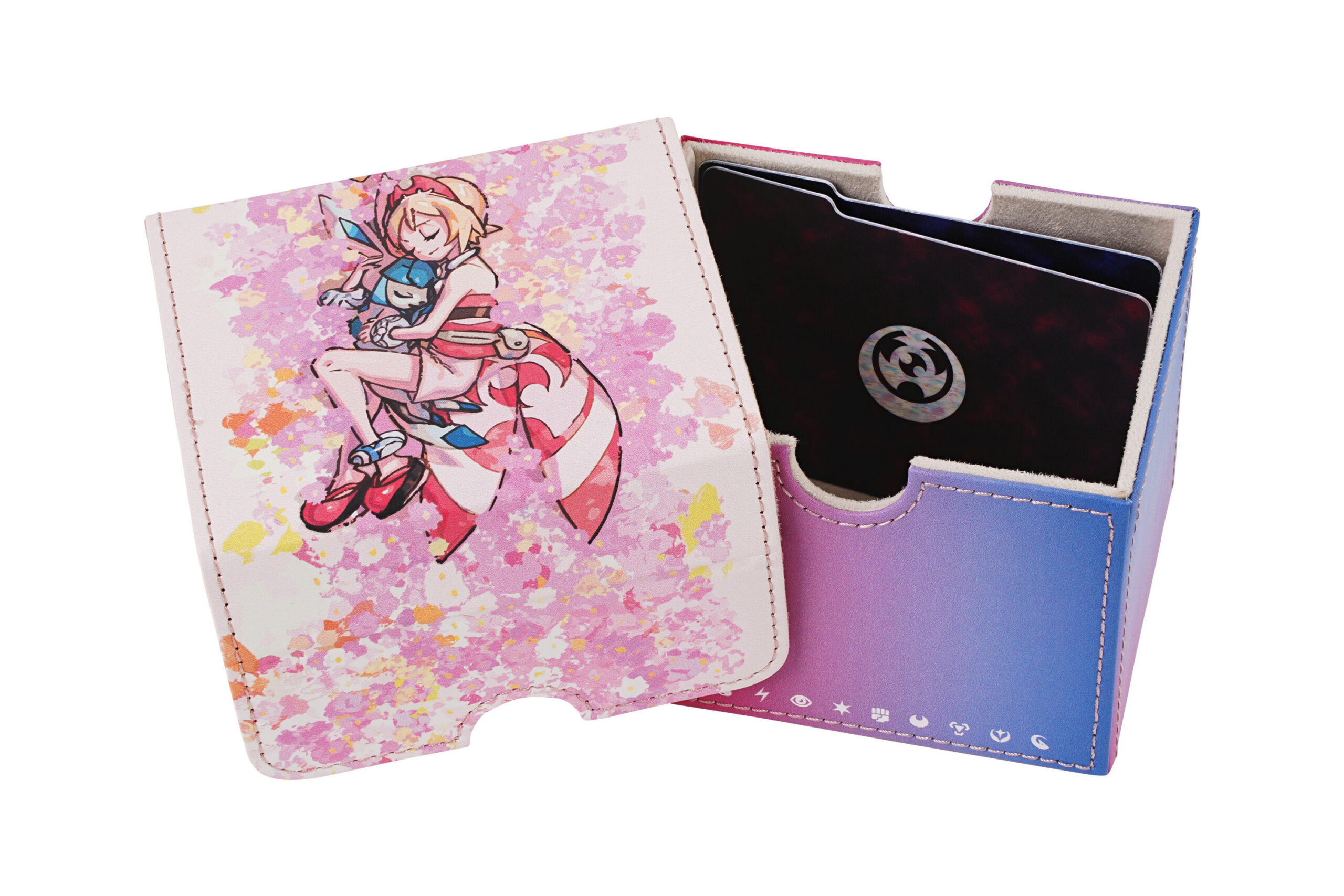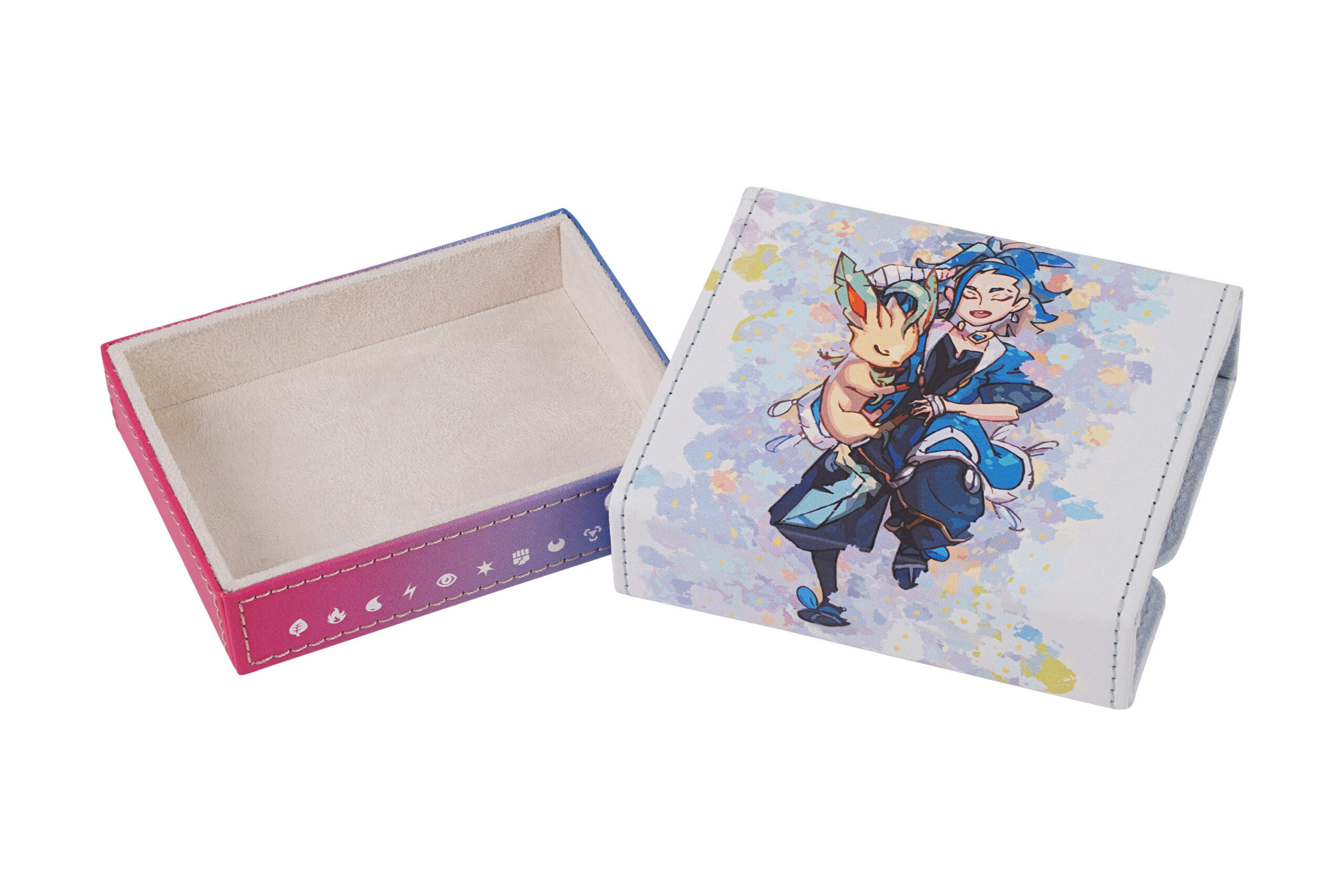 在这次的礼盒中包含了珠贝&刚石的主题卡组收纳盒和伤害指示物收纳盒各一个。收纳盒和收纳盒盖特别的磁吸设计,让卡组收纳盒和伤害指示物收纳盒分别可以换上珠贝或刚石主题的盖子,无论你喜欢珠贝还是刚石,卡组收纳盒和伤害指示物收纳盒都可以“变身”为你喜欢的模样。你的收纳盒由你定!