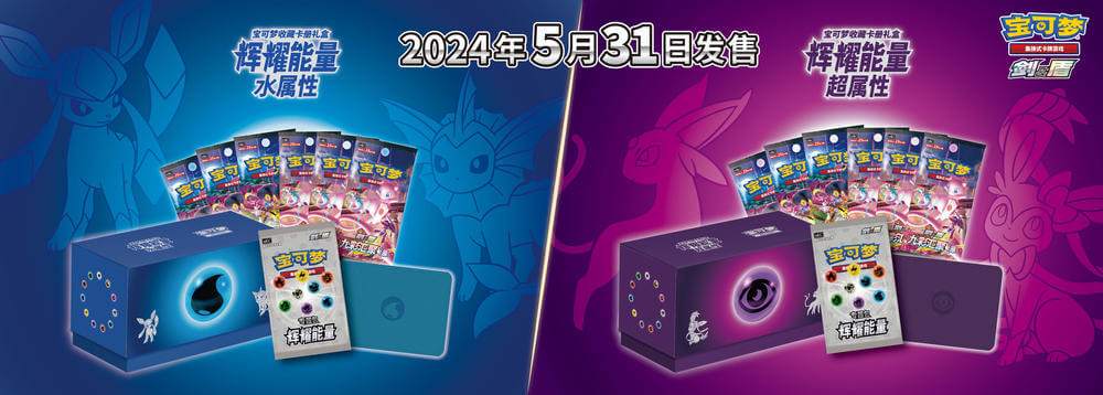 5月31日发售的“辉耀能量宝可梦收藏卡册礼盒”共有2款,分别为“辉耀能量宝可梦收藏卡册礼盒 水属性”和“辉耀能量宝可梦收藏卡册礼盒 超属性”。每款礼盒均收录了“辉耀能量”专题包1包,最新发售的补充包“九彩汇聚”也囊括在内。除此以外,对应属性的主题收藏卡册和卡牌收纳盒也收录其中。