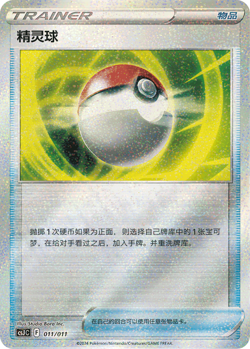 | 商品内容 | ●收纳用精灵球 1个 ●宝可梦艺术插画闪卡 1张 ●精灵球闪卡或高级球闪卡或训练家特别插画闪卡 1张 ●随机“九彩汇聚”补充包 1包(25张装规格) |