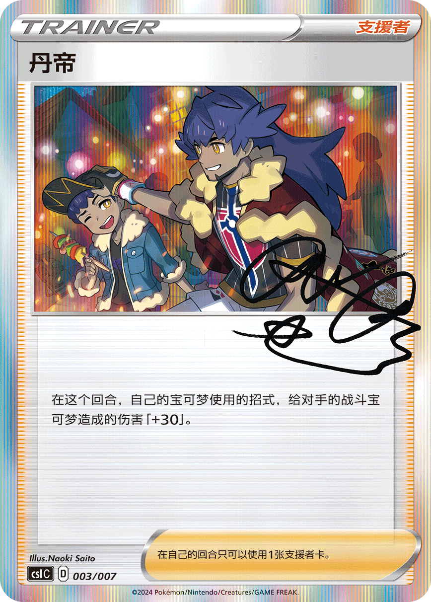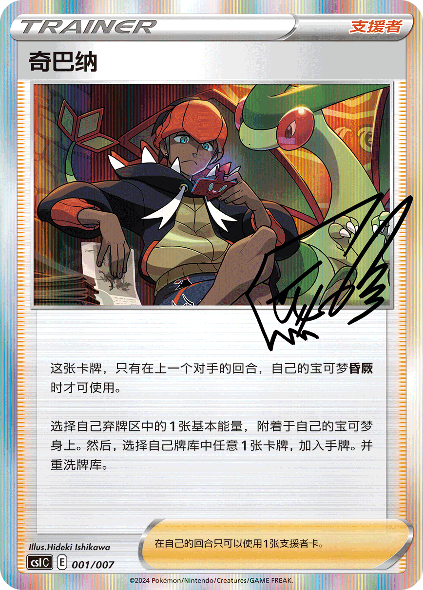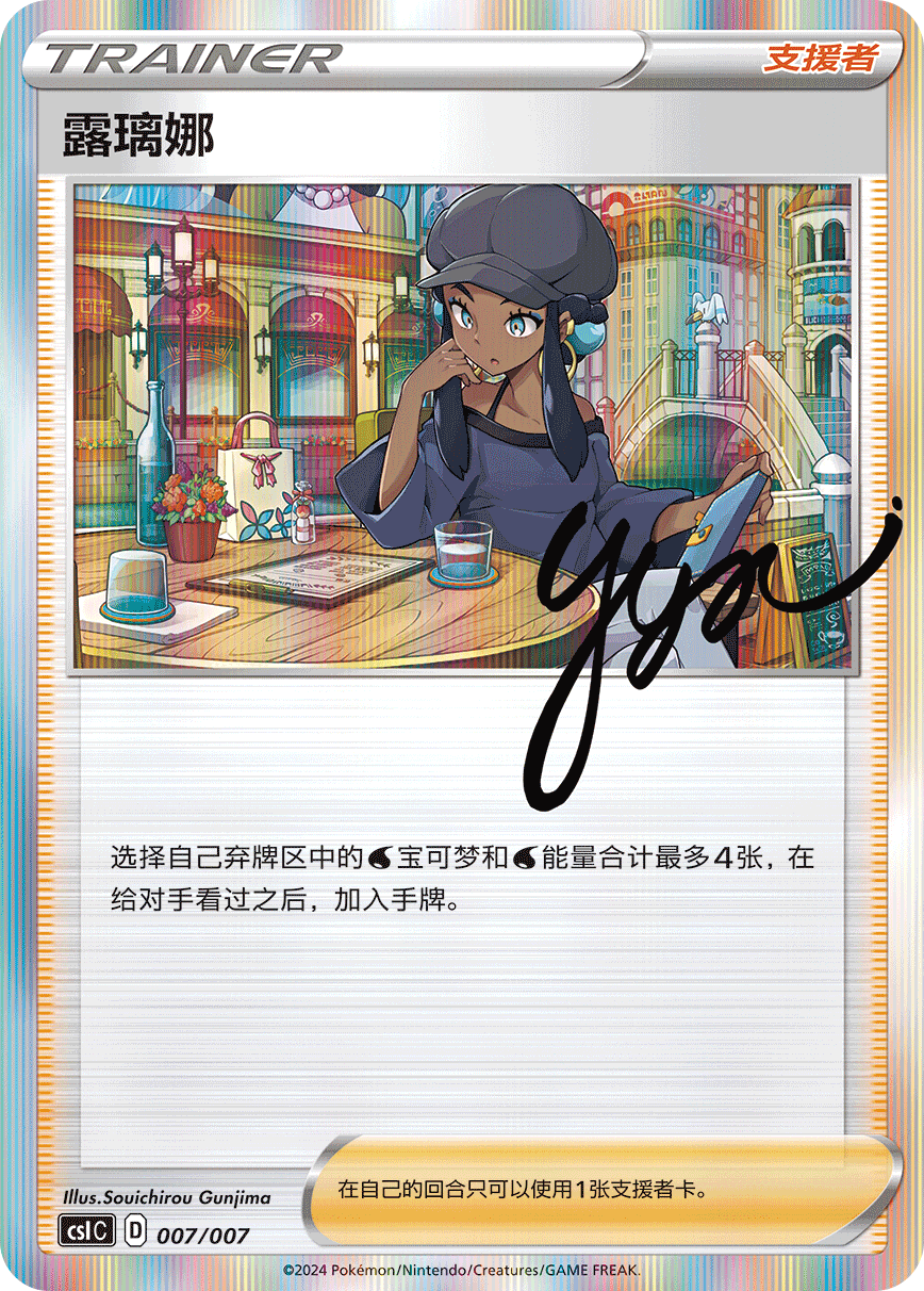 礼盒还内含一张与铁盒对应的训练家闪卡。分别是奇巴纳、彩豆、丹帝、彼特、赫普、玛俐、露璃娜和克拉拉。部分训练家卡上还印有训练家的“签名”哦!