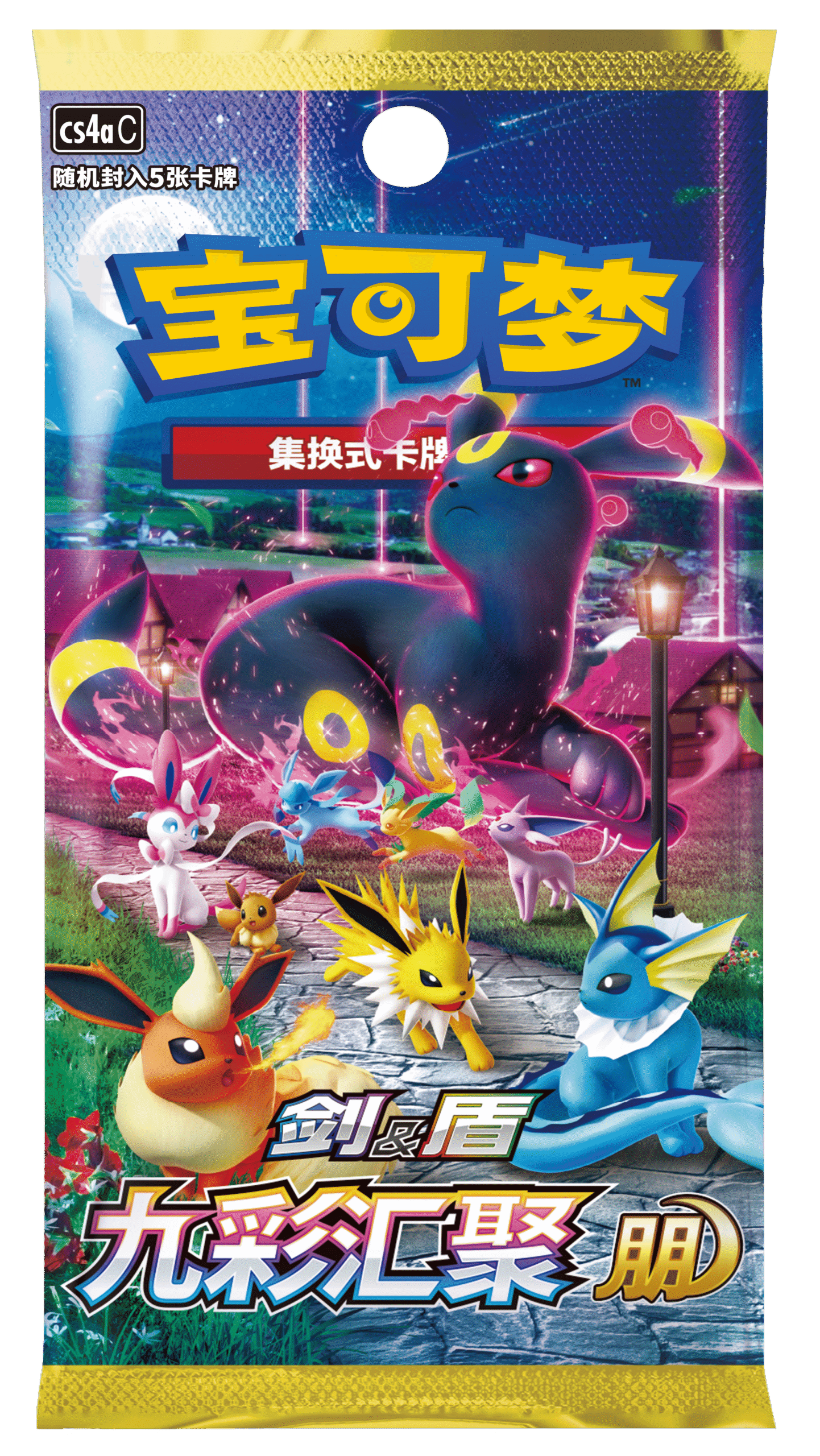 宝可梦卡牌“剑&盾”系列第四弹补充包——“九彩汇聚”也在礼盒内等待你的开启。收集卡牌、构筑卡组,尽享对战乐趣吧!