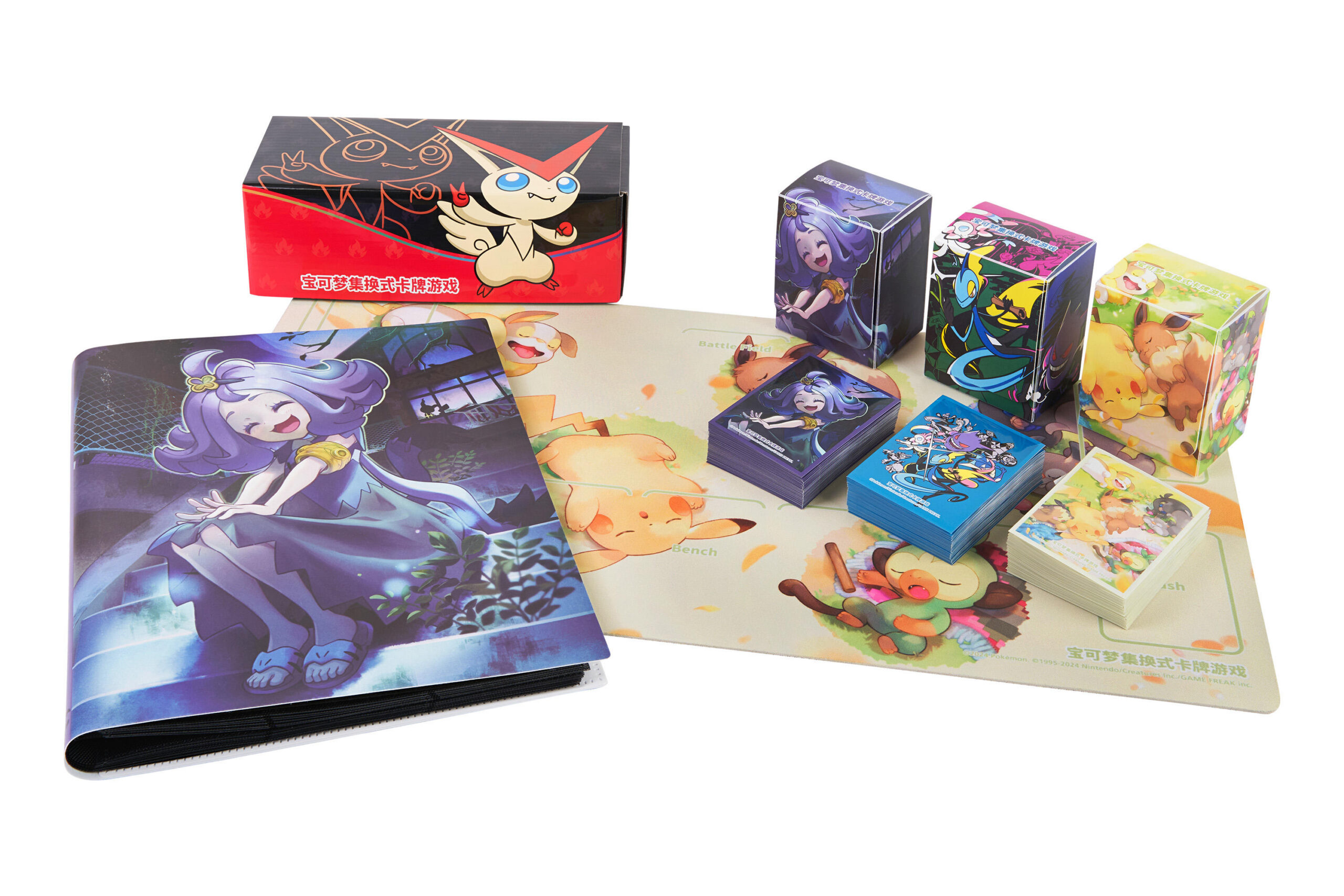 宝可梦卡牌展示组合分为“宝可梦卡牌展示组合 月亮伊布”和“宝可梦卡牌展示组合 梦幻”2款,每款除了含有对应的宝可梦展示卡框之外,还内含“九彩汇聚” 补充包和“终末炎舞” 强化包。