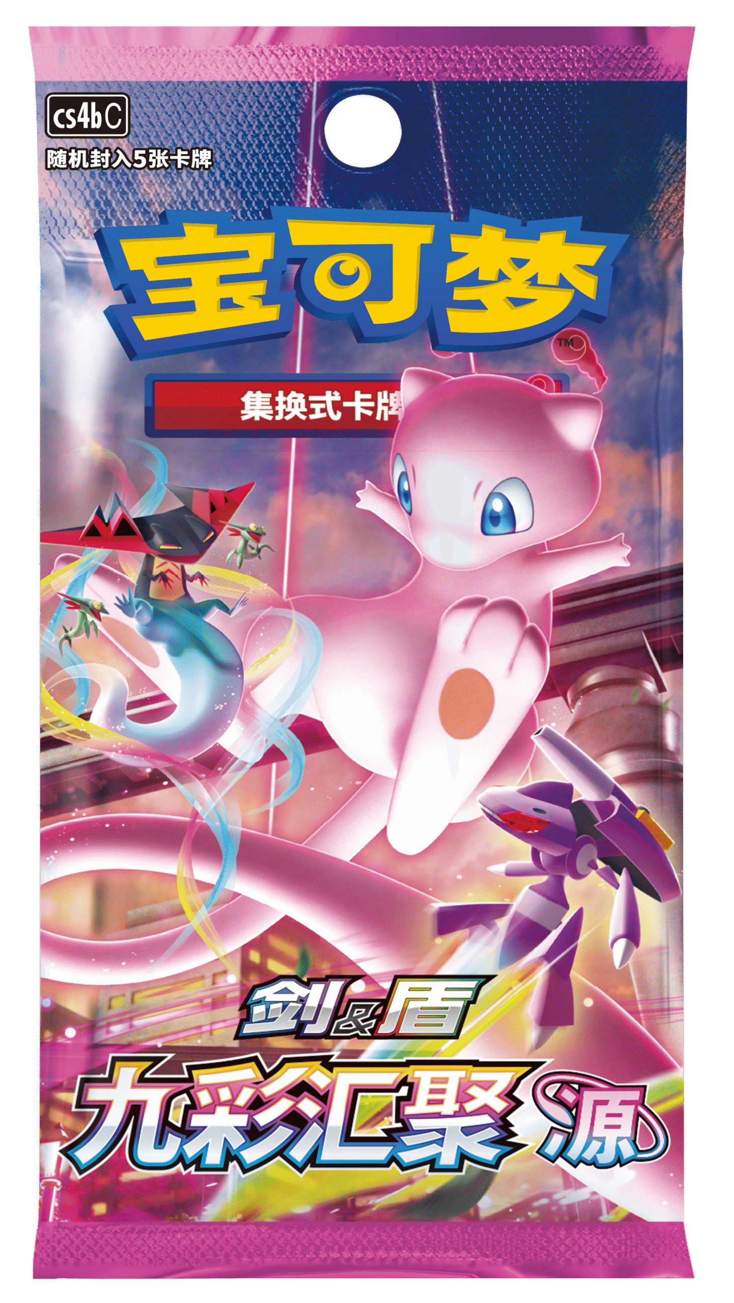 宝可梦卡牌“剑&盾”系列第四弹补充包——“九彩汇聚”也在礼盒内等待你的开启。收集卡牌、构筑卡组,尽享对战乐趣吧!
