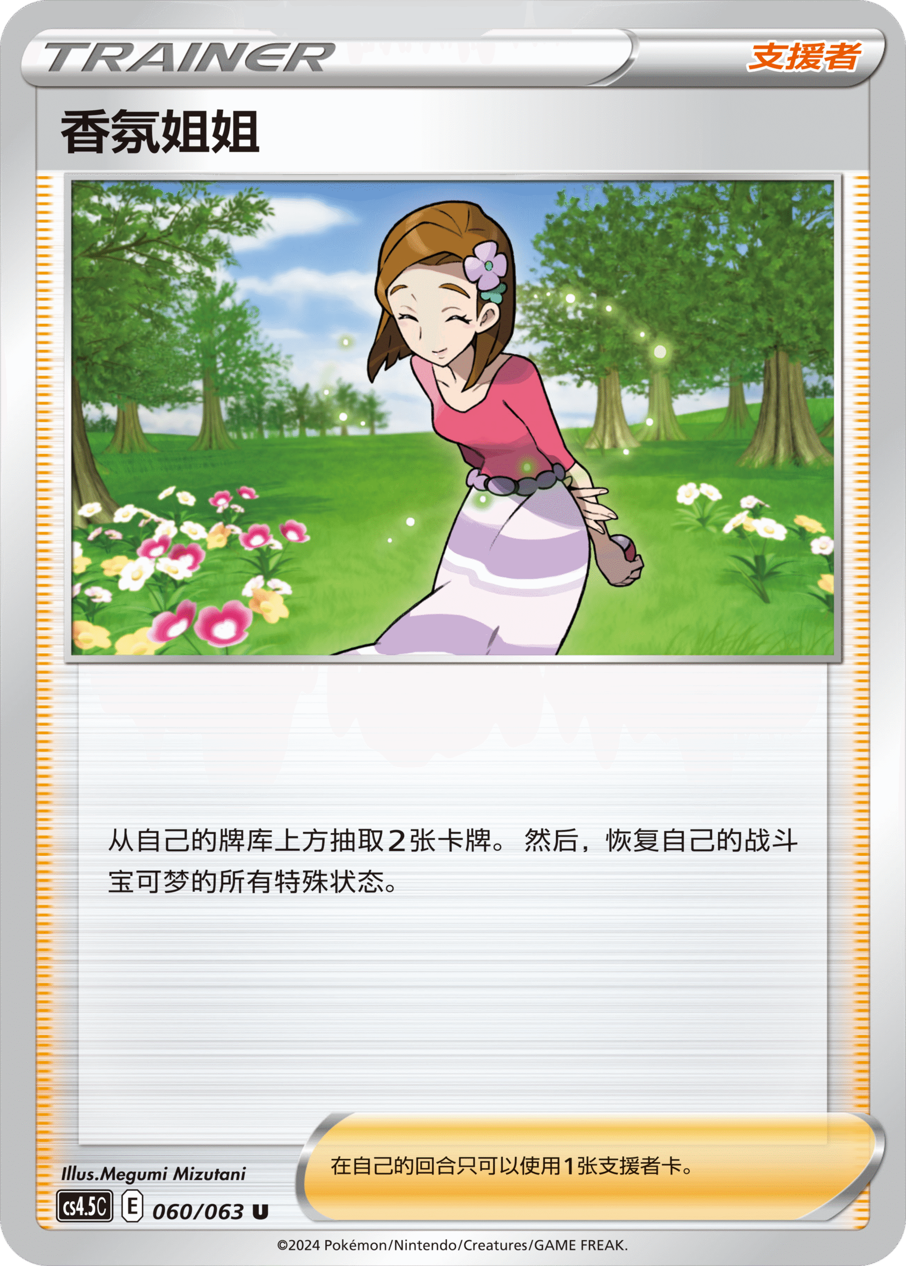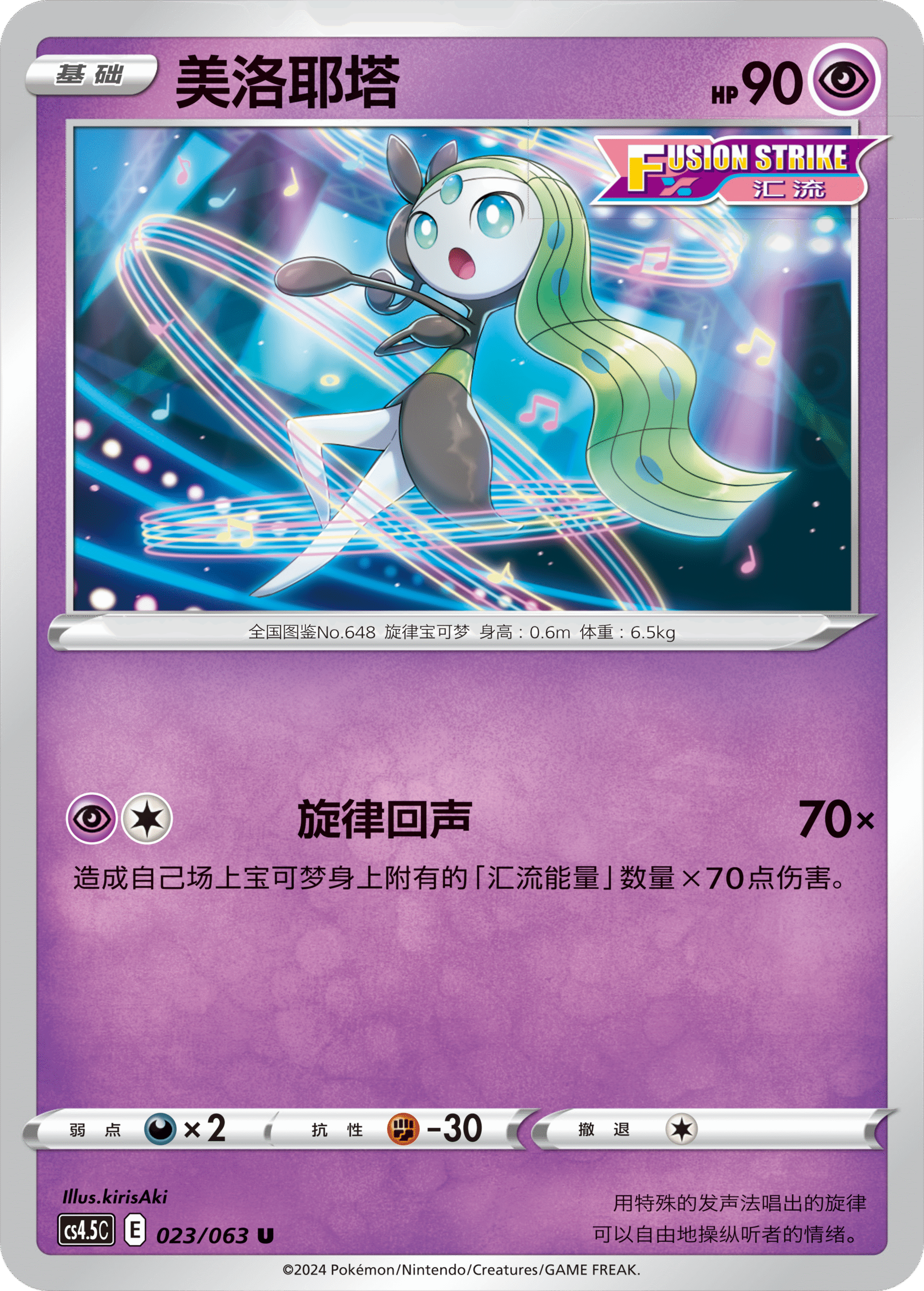 美洛耶塔则能搭配收录在补充包“九彩汇聚 源”里的“汇流能量”去重创对手。需要1个超属性和1个任意属性能量的“旋律回声”,可根据己方场上宝可梦身上附着的“汇流能量”总数量来造成对应伤害,最高可造成4×70=280点高伤。还记得“九彩汇聚 源”里介绍过的梦幻VMAX吗?你也可通过梦幻VMAX的招式“交错汇流”来灵活使用美洛耶塔的“旋律回声”。另外,支援者卡“小菊儿的璀璨”也能让你快速附着“汇流能量”,快来体验吧。