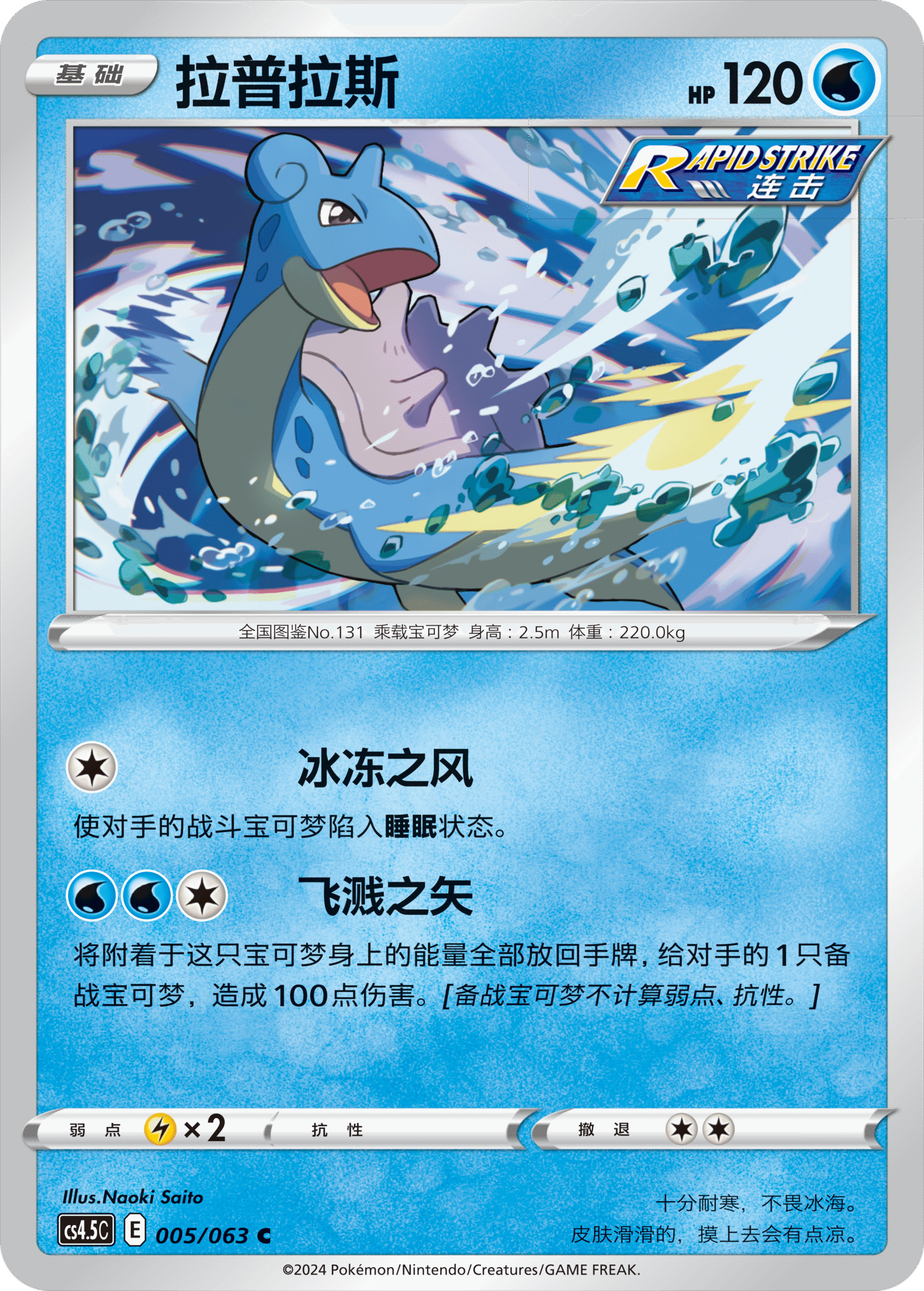 拉普拉斯则能让对手的战斗宝可梦陷入睡眠,你也可以用“飞溅之矢”去攻击对手备战区的宝可梦