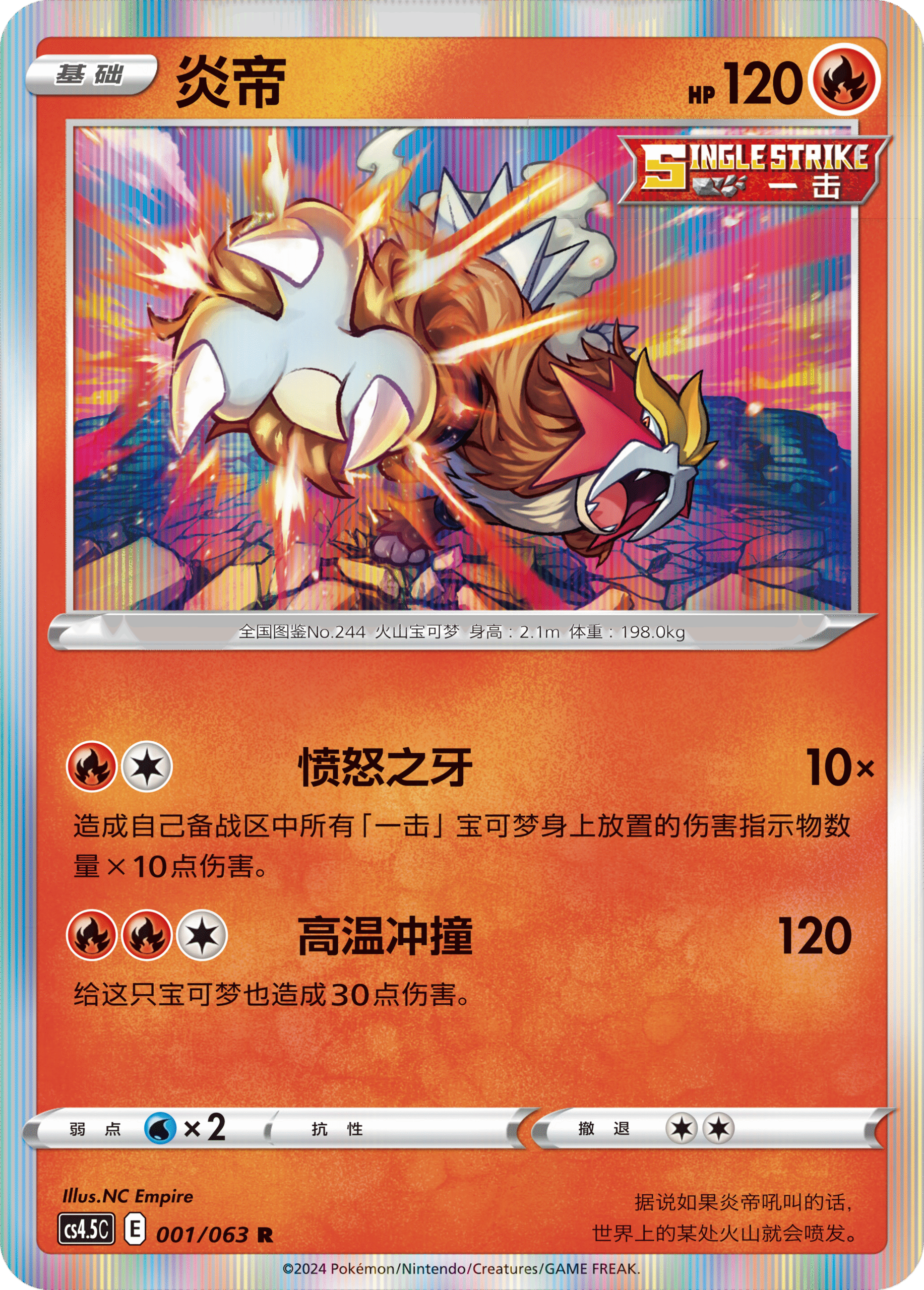 炎帝的 “愤怒之牙”可依照己方备战区所有“一击”宝可梦受到的总伤害来造成同等伤害,将己方小伙伴受到的痛苦如数奉还。