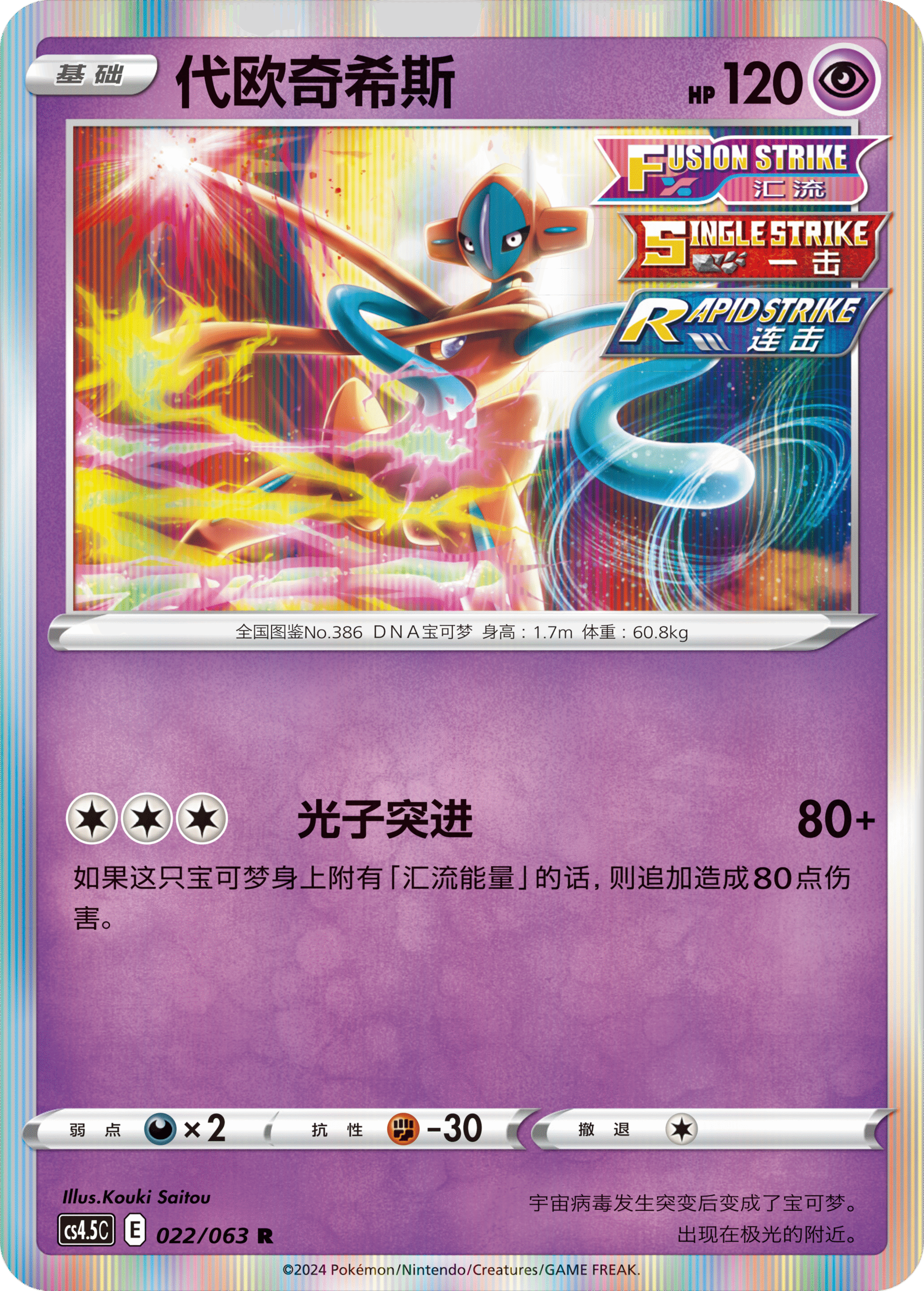 此外还为大家介绍同时身为“一击”、“连击”和“汇流”宝可梦的代欧奇希斯,以及基础宝可梦伽勒尔 急冻鸟。前者有着强大的泛用性,能与很多卡组构成连携。而后者则可快速附着能量对任意位置的宝可梦发动攻击。它们都将为你的卡组构筑带来新的玩法和乐趣。