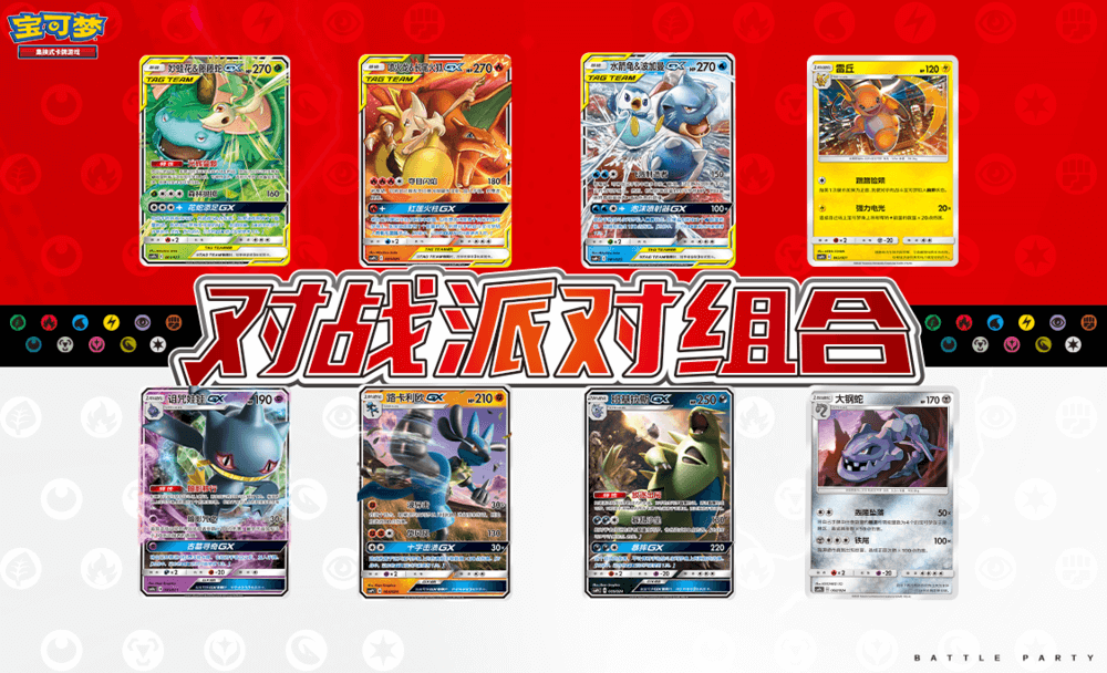 对战派对组合专为多人一起畅享宝可梦卡牌对战乐趣所设,内含8款预设好的对战卡组,训练家可轻松上手,即刻和亲朋好友开启欢乐对战之旅。