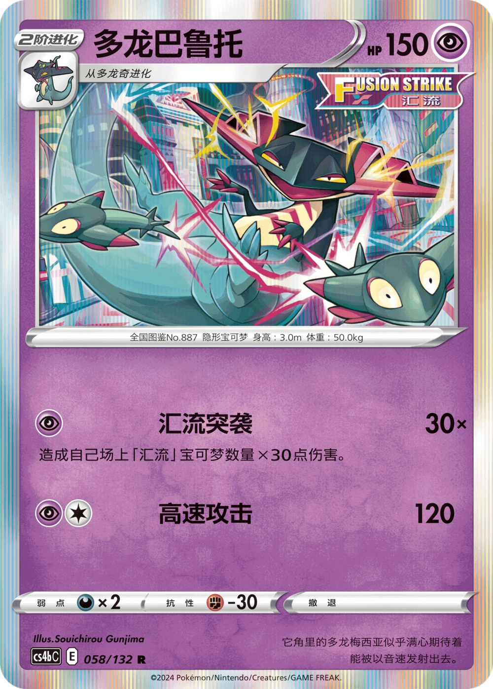 多龙巴鲁托的招式“汇流突袭”能根据己方场上“汇流”宝可梦的数量造成相应伤害,仅需1个超属性能量便能造成最高180点伤害,强力无比。