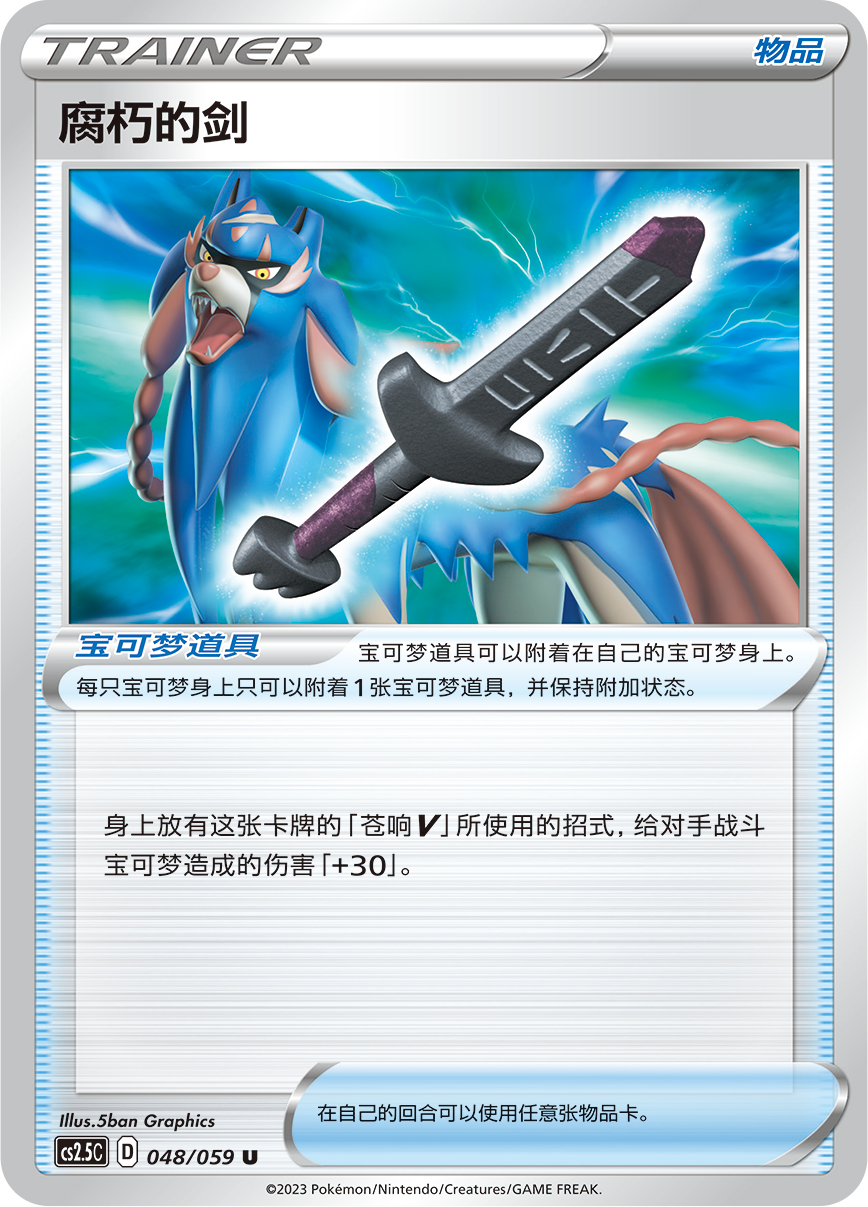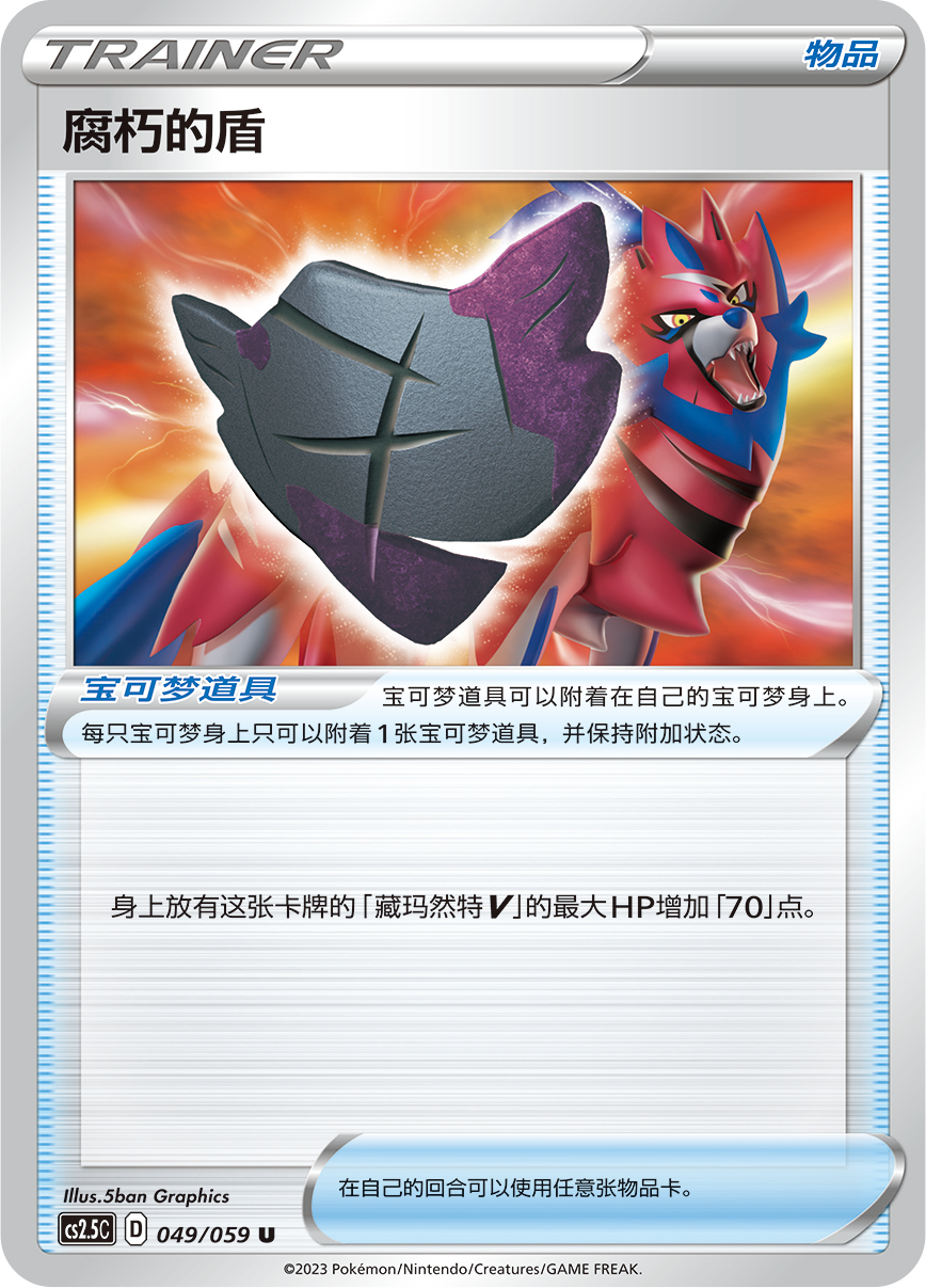 苍响V和藏玛然特V的专属宝可梦道具来了!腐朽的剑可为苍响V增加30点伤害,腐朽的盾则能令藏玛然特V 增加70点最大HP。是选择极致的进攻还是完美的防御?