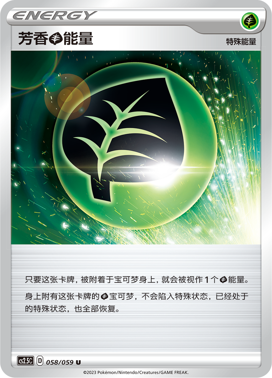 可使草属性宝可梦免疫特殊状态的芳香草能量以及消除钢属性宝可梦弱点的涂层钢能量在此。