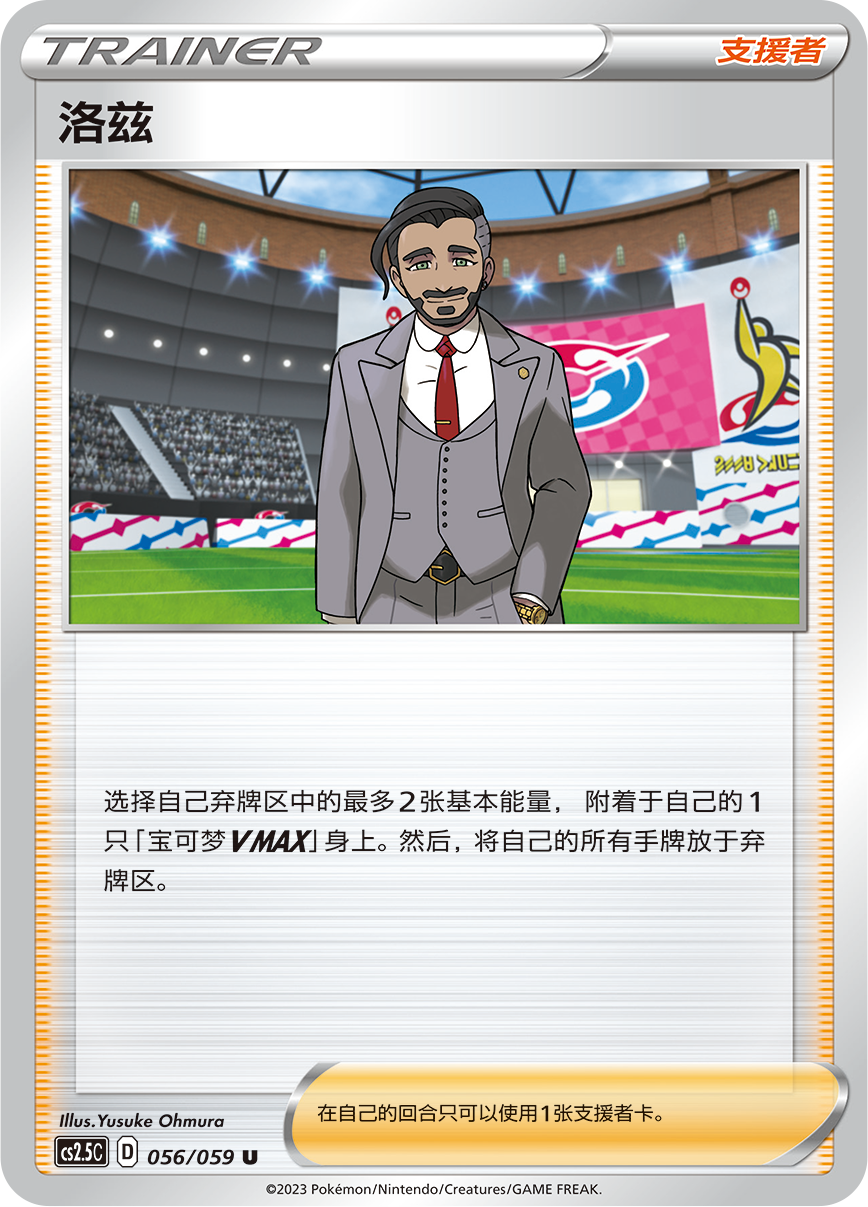 其招式“星辰坠落”可造成200点伤害,就基础宝可梦V而言这个招式的伤害非常可观。虽然使用招式需要2个斗属性能量和1个任意属性能量,但伽勒尔 葱游兵V还有一个强力特性“誓约长矛”,每当它从备战区进入战斗场时,可将场上己方宝可梦身上附着的任意数量斗属性能量转移到自身。通过与特性的联动,伽勒尔 葱游兵V可以非常灵活且快速地给予对手毁灭性打击,刺穿你面前的所有障碍!