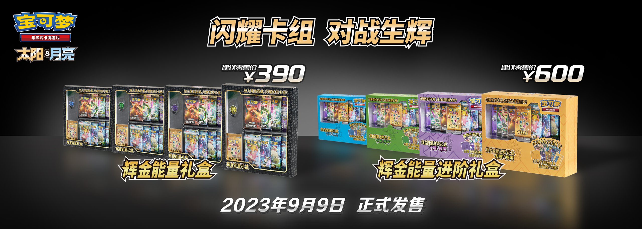 以上2款礼盒均于9月9日正式发售,其中辉金能量礼盒售价390元,辉金能量进阶礼盒售价600元。“太阳&月亮”系列限定赛制比赛也将如火如荼展开,还有“太阳&月亮 限定礼盒争夺赛”等你参加!
